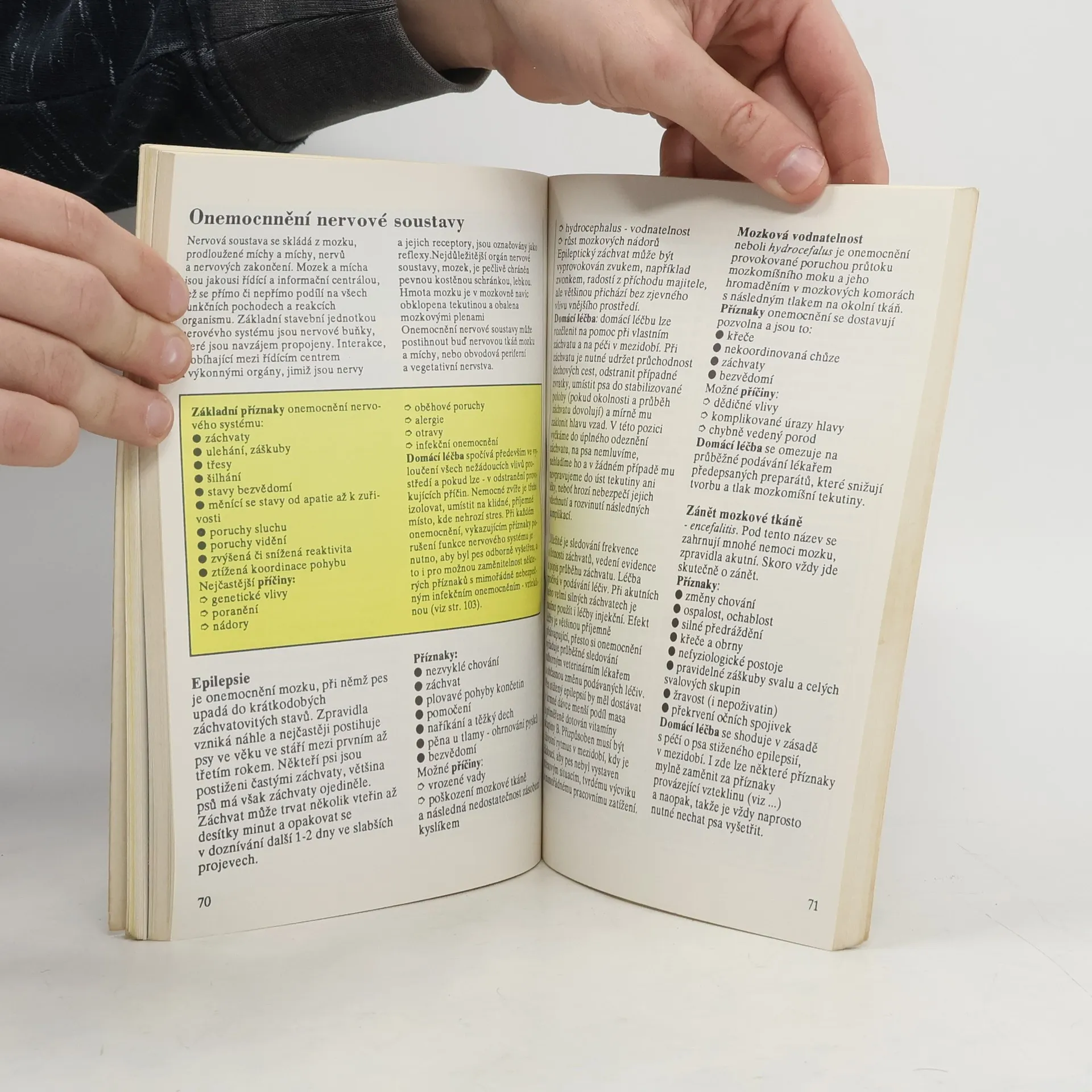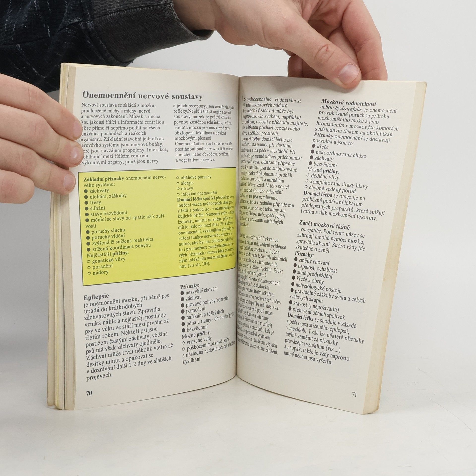 V knize je přehled onemocnění, se kterými se majitelé psů mohou běžně potkat. Nemoci jsou charekterizovány především na základě rozdílu mezi stavem organismu za zdravého, normálního stavu, a chorobnými změnami. Uvedené zásady a možnosti domácí léčby nejsou radami domácího léčitelství, ale návodem, jak zmírnit průběh a následky propuknuvší nemoci či úrazu nebo náhlé příhody a zamezit tak dalšímu zhoršování zdravotního stavu zvířete. U každé nemoci je popis, příznaky a domácí léčba, někdy doplněné o prevenci. V knize je i základní klíč k určení pravděpodobné příčiny potíží, kdy se postupným výběrem z příznaků majitel psa dozví, na které nemoci se má zaměřit... celý text