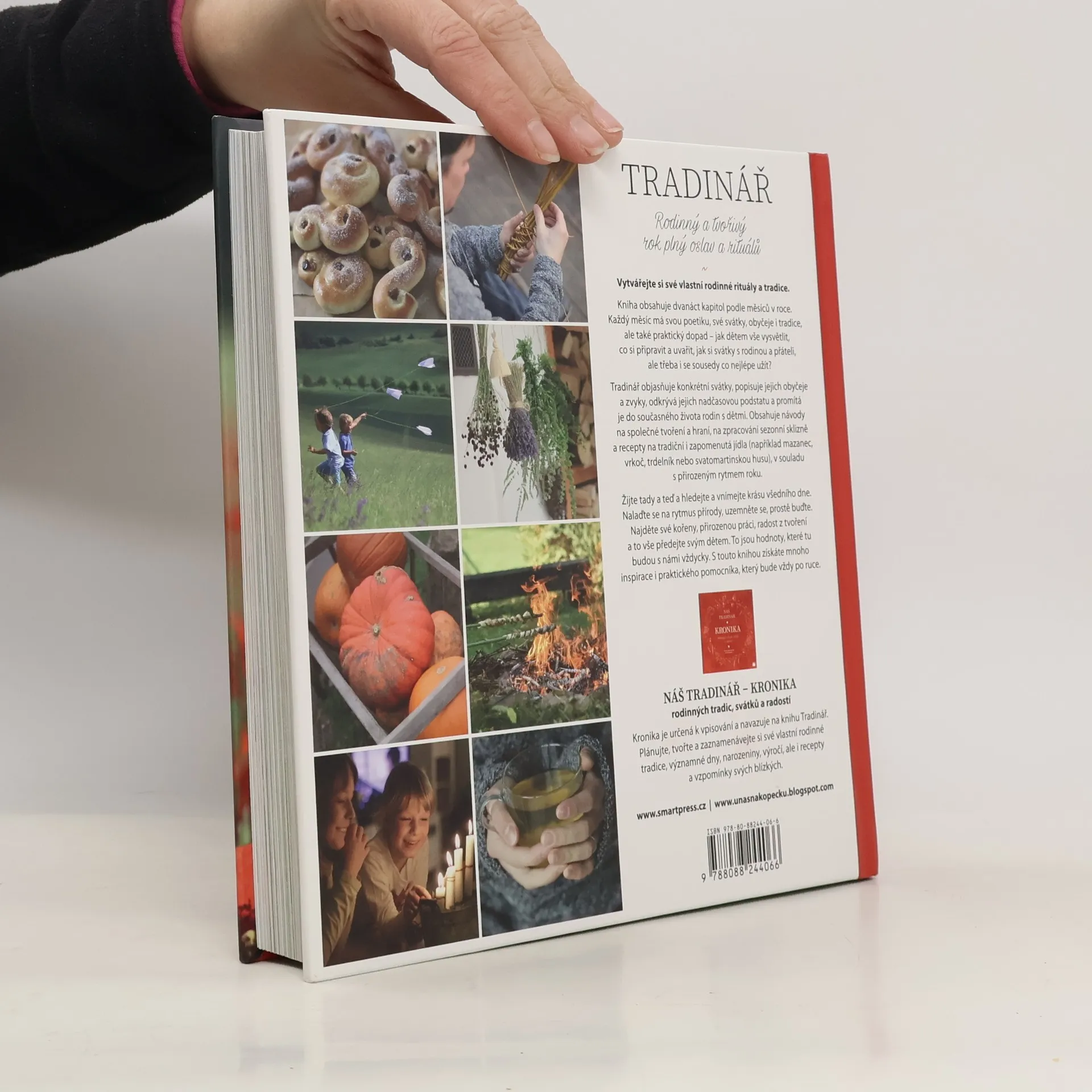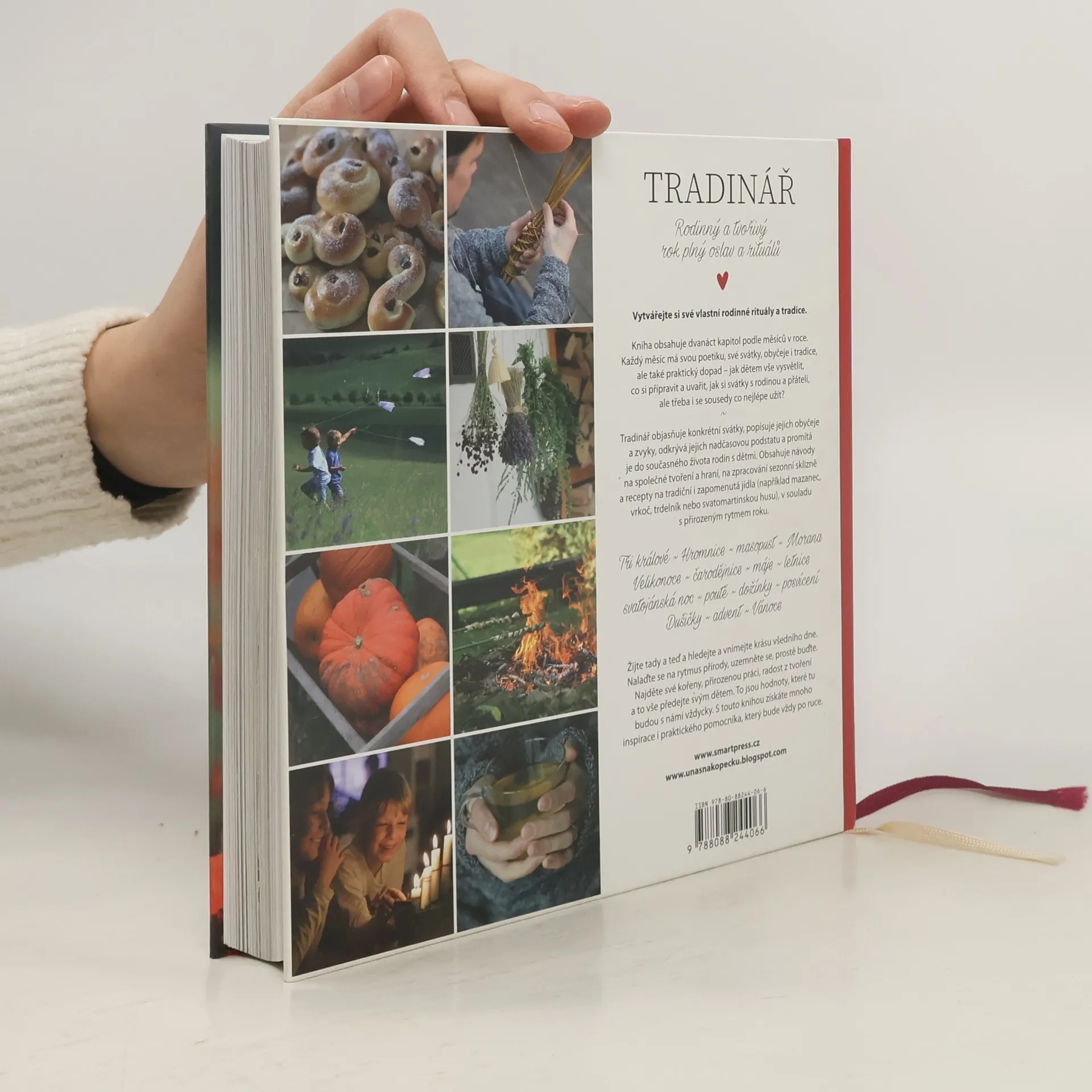 Limitovaná edice - bílá obálka. Kniha obsahuje dvanáct kapitol podle měsíců v roce. Každý měsíc má svou poetiku, své svátky a rituály, ale i praktický dopad - jak vše dětem vysvětlit, včas si připravit, na nic nezapomenout? Vytvoříte si své vlastní rodinné rituály a tradiční svátky si společně s rodinou, sousedy a přáteli pěkně užijete. Rodina - Tradice - Rok - Rytmus - Příroda - Rituály - Vaření - Tvoření - Zahrada Všichni rádi slaví. V listopadu pečeme husy, Vánoce slavíme nejraději, na Velikonoce si obarvíme vajíčka. Víme ale proč? Filipojakubská či svatojánská noc nám znějí tajemně a magicky. Kniha vysvětluje konkrétní svátky, objevuje souvislosti, popisuje symboly a významy a promítá je do současného života. Obsahuje návody na jednoduché tvoření a recepty na tradiční i zapomenutá jídla (např. svatomartinské rohlíčky či šípkový čaj). Vychází z tradic a vrací rodinnému, ale i společenskému životu prapůvodní podstatu, kdy se žilo ve spojení s přírodními cykly a ve větší pospolitosti. Mnoho svátků a obyčejů se slaví společně - v obci, vesnici, komunitě, mezi sousedy. Nalaďte se na rytmus přírody, uzemněte se, prostě buďte. Najděte své kořeny, přirozenou práci, radost z tvoření a to vše předejte svým dětem. Jsou to totiž hodnoty, které tu budou s námi (snad) vždycky. Kniha je vhodná pro maminky, tatínky, pro mateřská centra, školky, školy, babičky a dědečky. Rodinný a tvořivý rok plný oslav a rituálů.