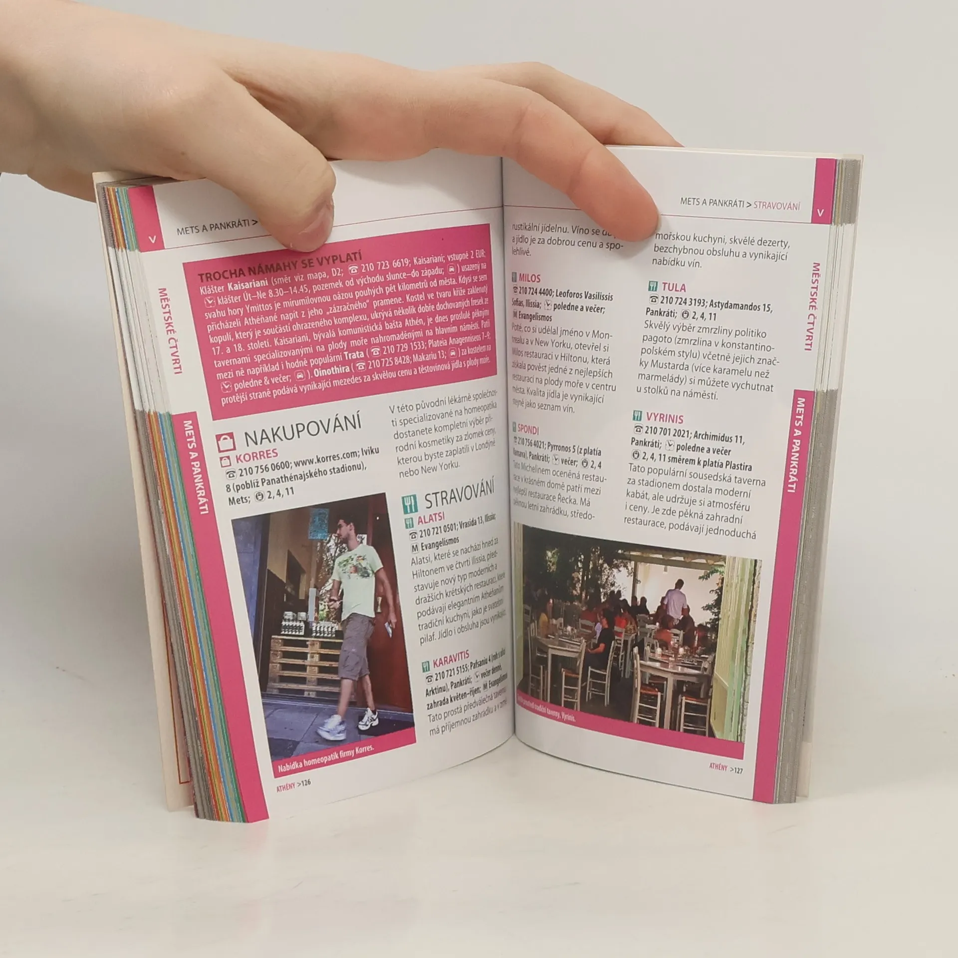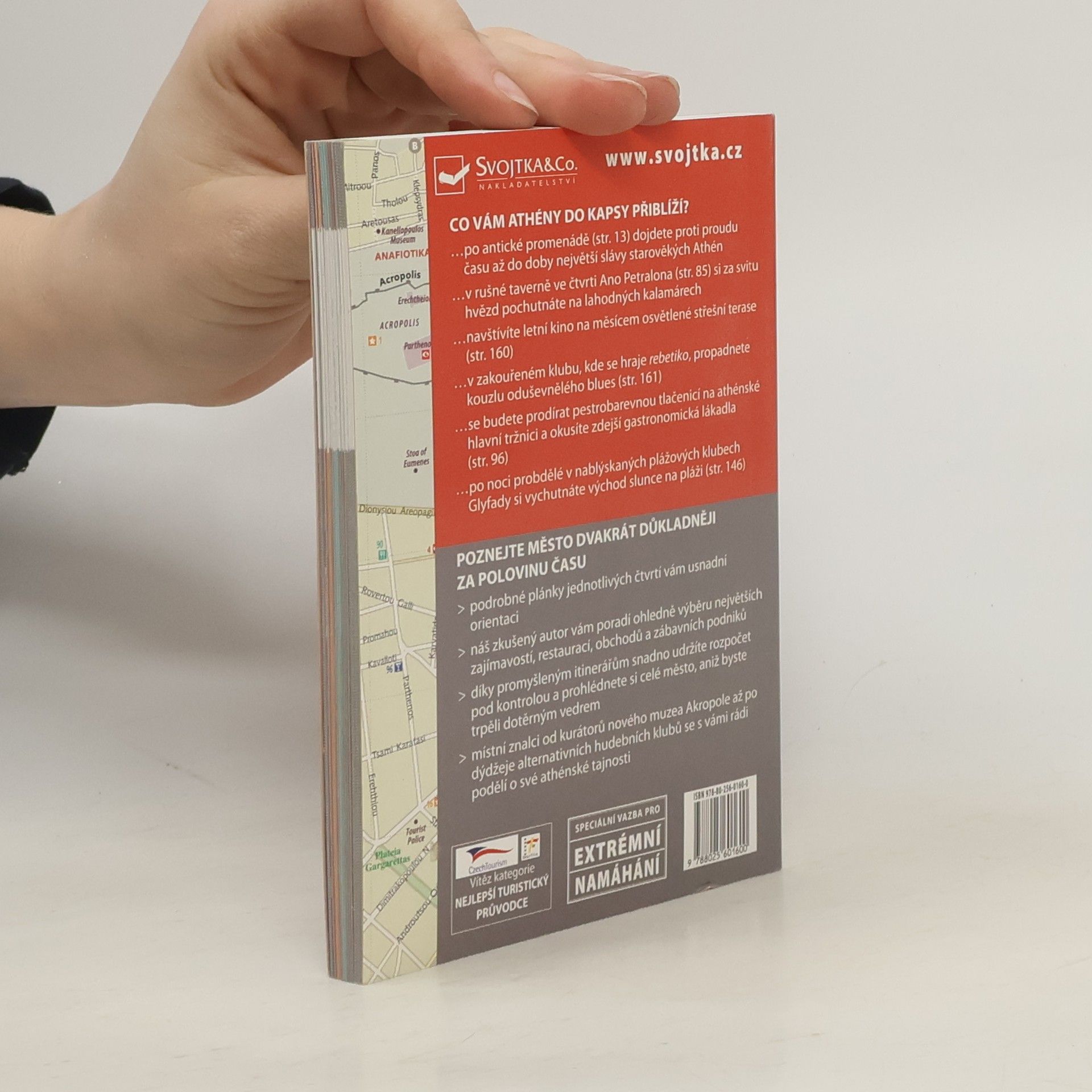 CO VÁM ATHÉNY DO KAPSY PŘIBLIŽÍ? - po antické promenádě dojdete proti proudu času až do doby největší slávy starověkých Athén - v rušné taverně ve čtvrti Ano Petralona si za svitu hvězd pochutnáte na lahodných kalamárech - navštívíte letní kino na měsícem osvětlené střešní terase - v zakouřeném klubu, kde se hraje rebetiko, propadnete kouzlu oduševnělého blues - se budete prodírat pestrobarevnou tlačenicí na athénské hlavní tržnici a okusíte zdejší gastronomická lákadla - po noci probdělé v nablýskaných plážových klubech Glyfady si vychutnáte východ slunce na pláži POZNEJTE MĚSTO DVAKRÁT DŮKLADNĚJI ZA POLOVINU ČASU - barevná skládací mapa celého města a podrobné plánky jednotlivých čtvrtí vám usnadní orientaci - zkušený průvodce vám poradí ohledně výběru největších zajímavostí, restaurací, obchodů a zábavních podniků - díky promyšleným itinerářům snadno udržíte rozpočet pod kontrolou a prohlédnete si celé město, aniž byste trpěli dotěrným vedrem