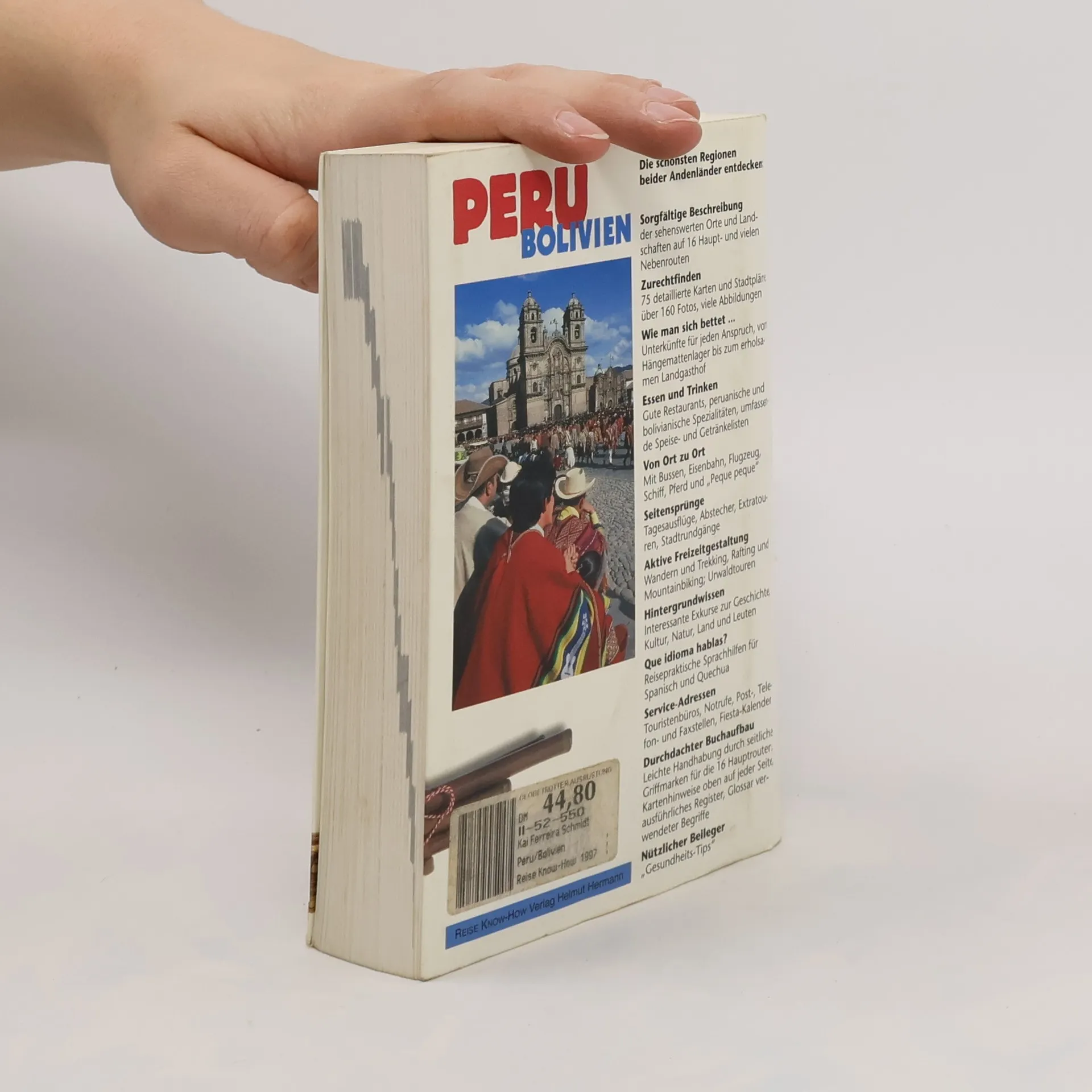 Der richtige Führer für Erlebnisreisen auf den Spuren der Inka. Ausführliche Reiserouten durch das Hoch- und Küstenland, Stadtrundgänge in alten Kolonialstädten, Abstecher in den Urwald sowie Trekkingrouten. Mit fundierten Hintergrundinformationen zu Land und Leuten Dieser bewährte RKH-Reiseführer ist ein idealer Begleiter durch Peru und Bolivien sowohl für Einzel- als auch für organisiert Reisende. Die ausführlichen Beschreibungen der sehenswerten Orte und Sehenswürdigkeiten, der archäologischen Stätten und Naturschutzgebiete werden durch zahllose Adressen, praktische Informationen sowie eine Sprachhilfe Spanisch und Quechua ergänzt. Besonders nützlich sind die detaillierten, eng mit dem Text verzahnten Karten sowie die persönlichen Empfehlungen des Autors zu Unterkünften, Restaurants und Transportmitteln (Bus, Bahn, Flugzeug, Schiff, Mietwagen). Der landeskundliche Teil und viele informative Exkurse zeichnen ein plastisches Bild der Geschichte, Kultur und aktuellen Situation der beiden Andenländer. Schwerpunktkapitel zur Welt der Inka (Cusco, Machupicchu, Inka-Trail u. a.), zu Regenwald-Exkursionen und Trekking. Mit über 90 auf den Text abgestimmte, detaillierte Karten und Stadtpläne, über 200 Abbildungen u. Fotos, Klappenkarten, Griffmarken, Sprachhilfe Spanisch u. Quechua, umfangreiches Glossar u. Register.