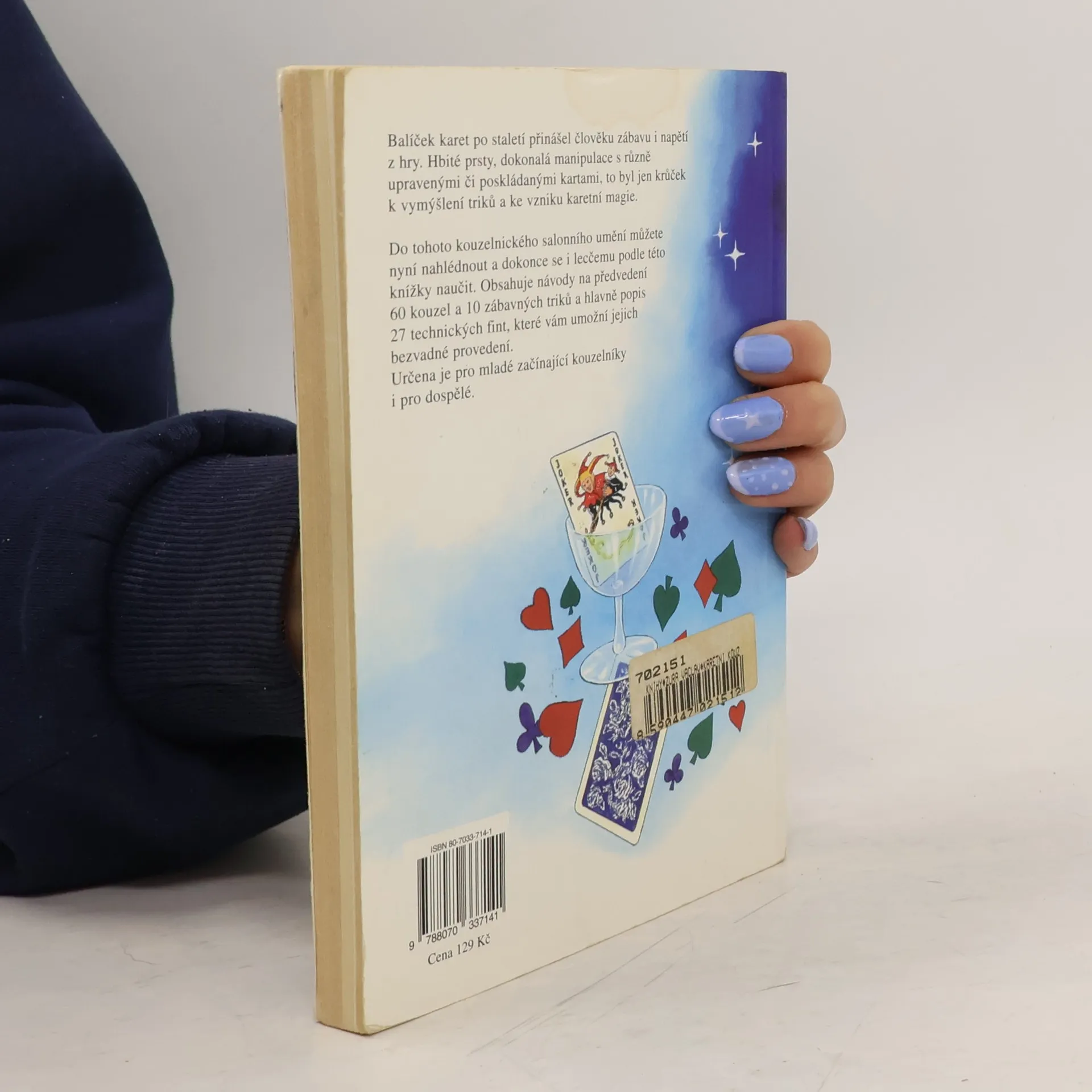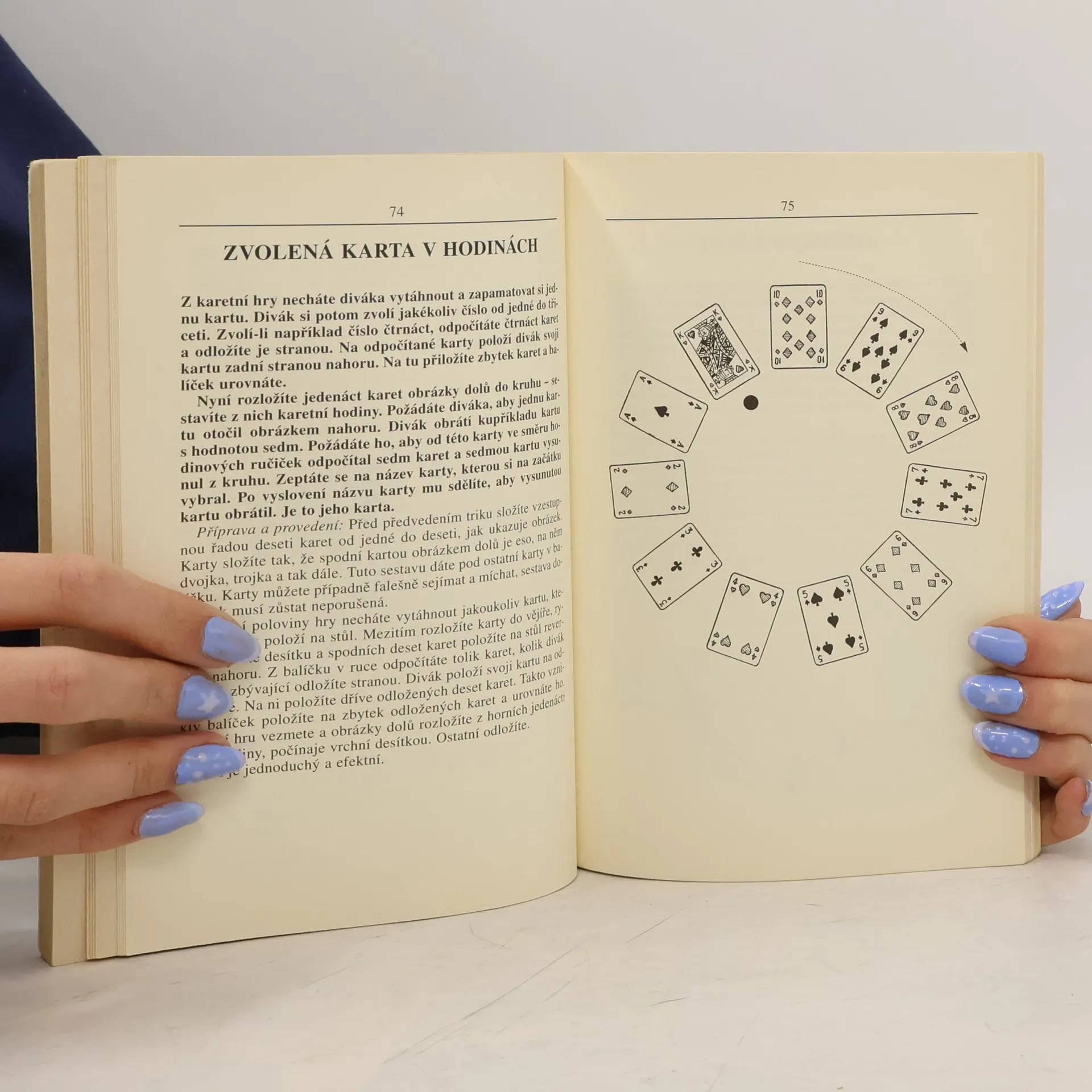Knížka obsahuje návody na předvádění kouzel a triků z obyčejných i upravených karet.
