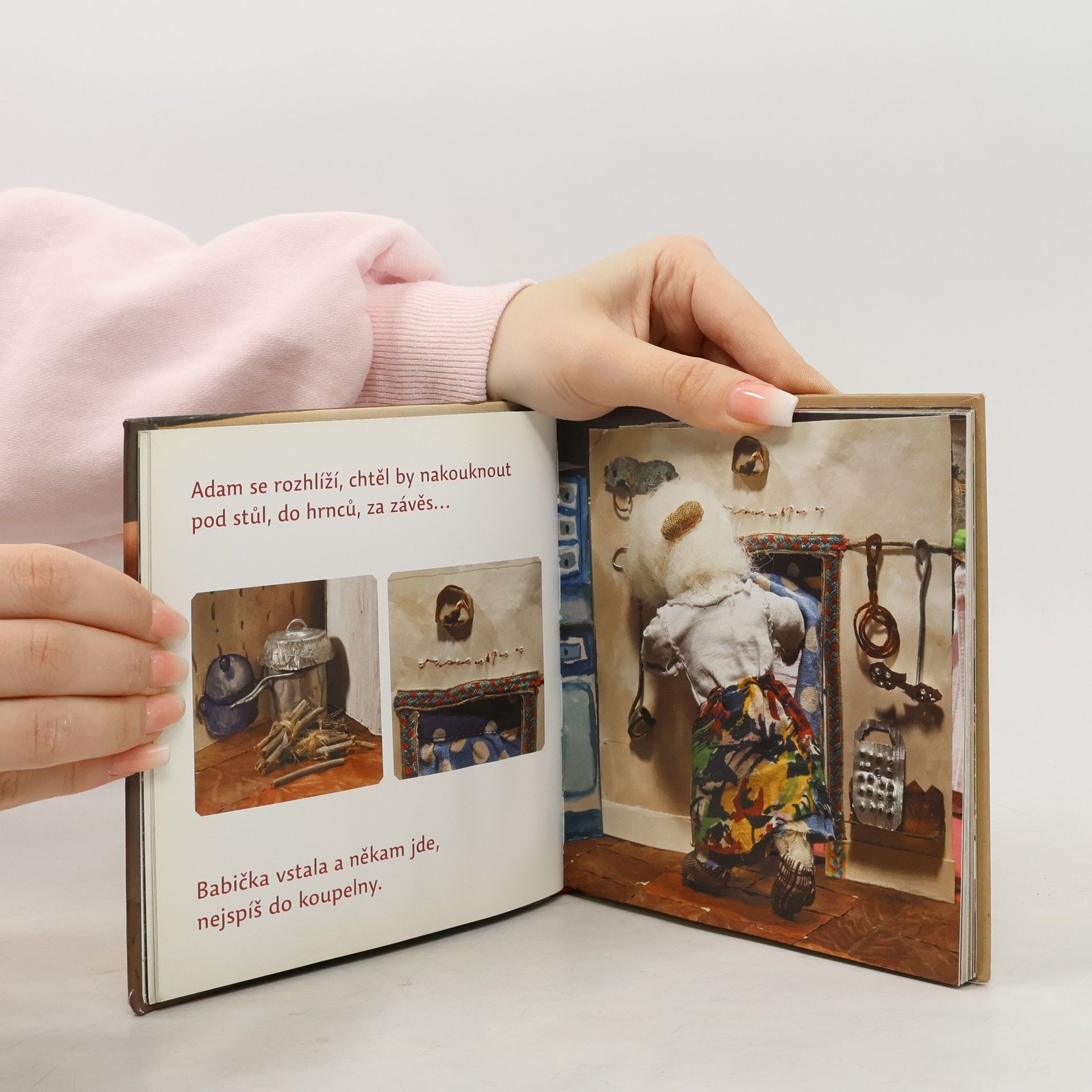 Netuctový příběh Dagmar Urbánkové je z těch, které nejdou z hlavy. Vypraví o Adamovi a rozbitém koleně. A proč by se děj nemohl odehrávat přímo pod roztrženou nohavicí? Malý svět za trhlinou kalhot sestavila autorka z miniaturních věciček: kousků pomerančové kůry, klacíků, větví, listů a samozřejmě maličkých loutek. Její scénografie nepůsobí nijak teatrálně, jsou neokázalé a vtipné a doplněné stručným, avšak dětí znalým textem. Kniha byla nominována na literární cenu "Zlatá stuha - 2007 - Cena za beletrii pro děti".