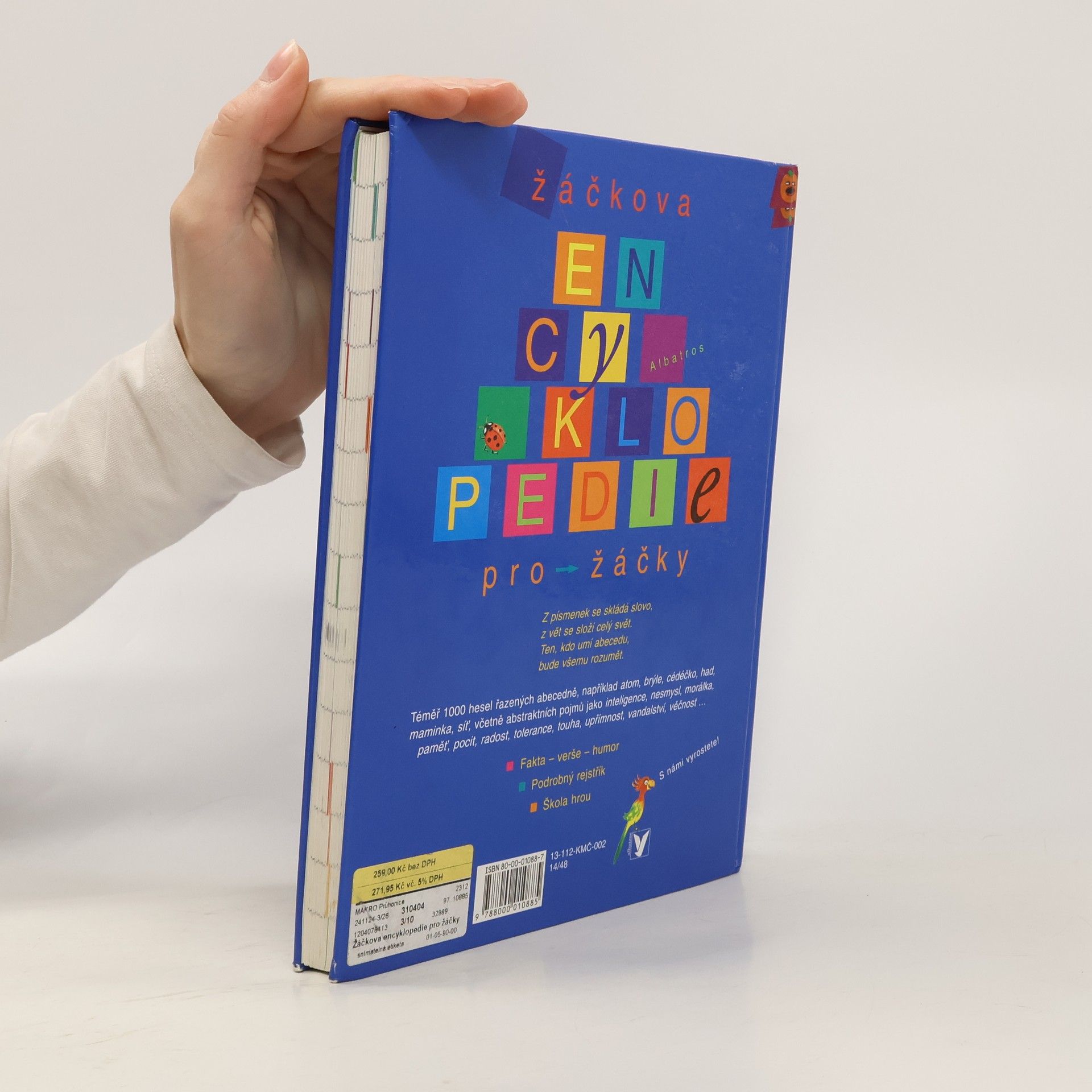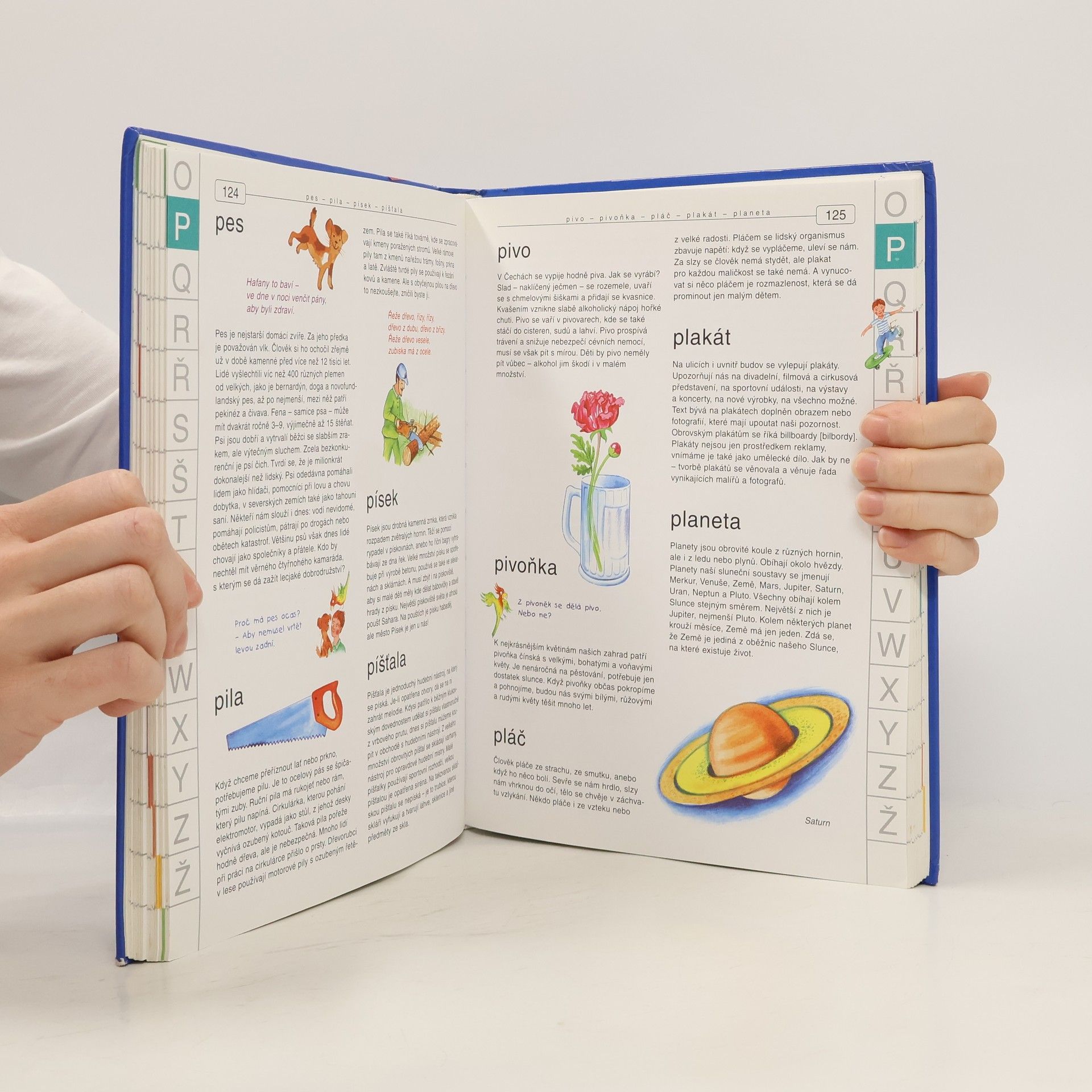 Abecedně uspořádaná všeobecná encyklopedie, v níž děti najdou téměř tisíc hesel, spoustu obrázků a krátkých básniček. Nechybí ani pojmy abstraktní a filozofické (spravedlnost, náboženství, láska, demokracie). Publikace by měla přispět k obohacení slovní zásoby, rozšíření znalostí, ale i k osvojení abecedy a k tomu, aby dítě umělo pracovat s rejstříkem. Některé pojmy budou dětem jasné hned, u jiných budou patrně hledat bližší vysvětlení u rodičů. Knížka je určena dětem od 6 let.... celý text
