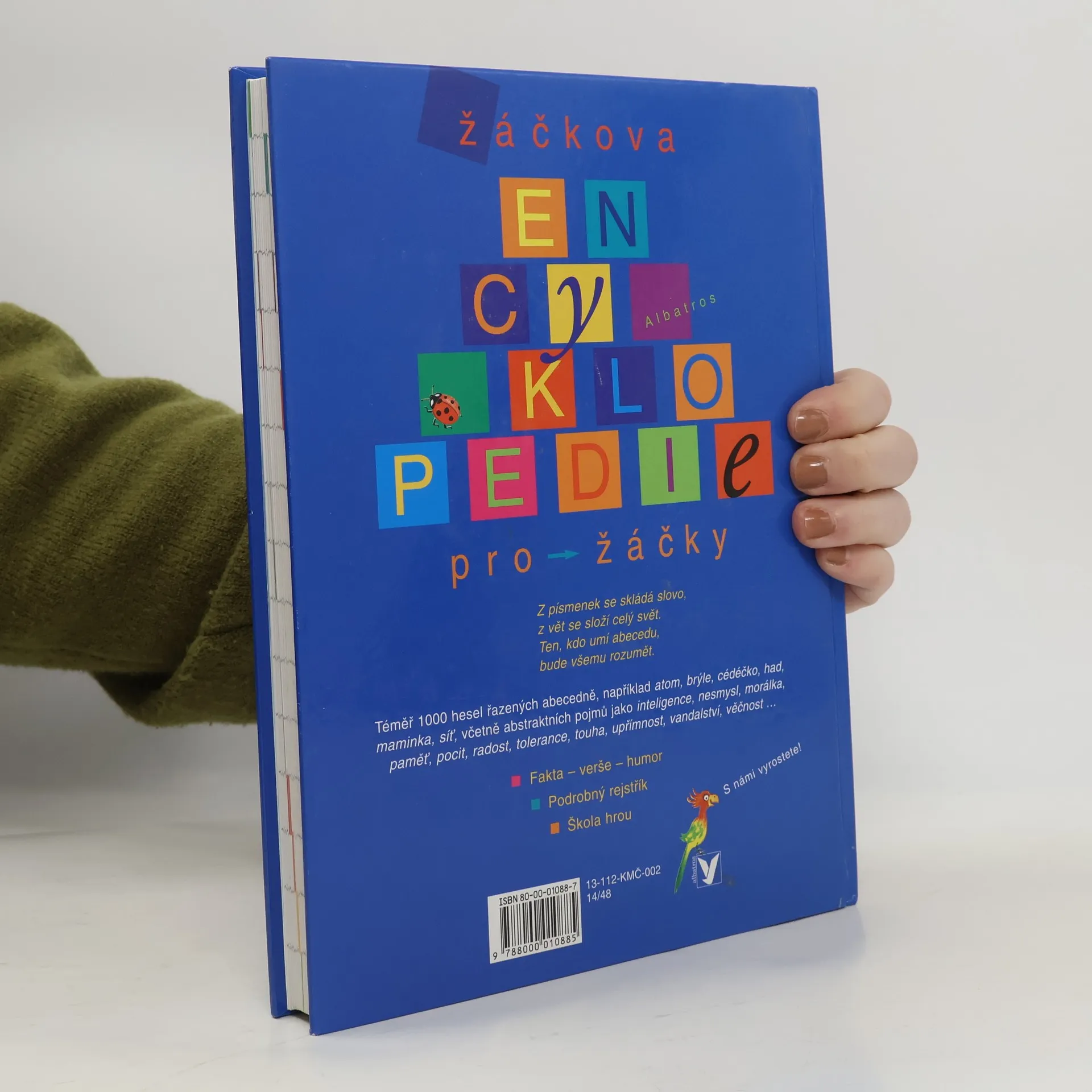 Abecedně uspořádaná všeobecná encyklopedie, v níž děti najdou téměř tisíc hesel, spoustu obrázků a krátkých básniček. Nechybí ani pojmy abstraktní a filozofické (spravedlnost, náboženství, láska, demokracie). Publikace by měla přispět k obohacení slovní zásoby, rozšíření znalostí, ale i k osvojení abecedy a k tomu, aby dítě umělo pracovat s rejstříkem. Některé pojmy budou dětem jasné hned, u jiných budou patrně hledat bližší vysvětlení u rodičů. Knížka je určena dětem od 6 let.... celý text