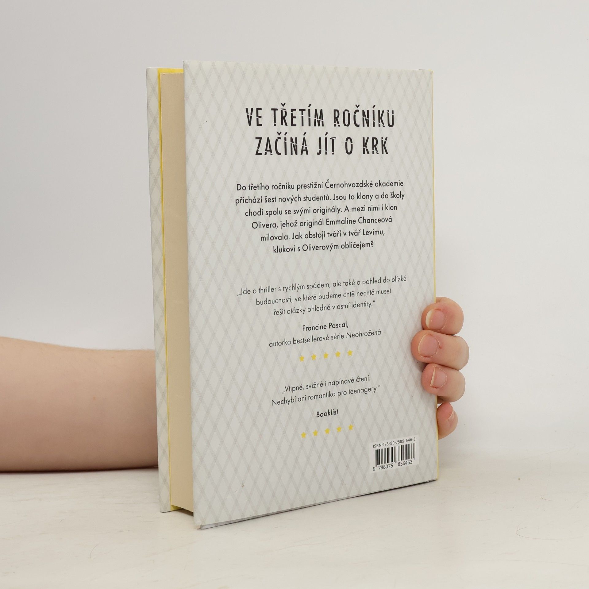 Letos na podzim přichází do třetího ročníku prestižní Černohvozdské akademie šest nových studentů. Ale nejsou to jen tak obyčejní ambiciózní teenageři. Jsou to klony. A do školy chodí spolu se svými originály. Dvojníci jsou předmětem každé konverzace. Co jsou tyto klony zač? Proč všichni chodí na Černohvozd? A kdo je ten šílenec, který porušil zákon, aby je stvořil? Emmaline Chanceové je to ukradené. Její nejlepší kamarád Oliver v létě zemřel a ona se musí ze všech sil snažit, aby bez něj den za dnem přežila. Poté se však ocitne tváří v tvář Levimu – jednomu z Dvojníků a přesné kopii Oliverova DNA. Emma je záhy vtažena do party Dvojníků. Nemůže uniknout znepokojivým pravdám o klonech a svém prestižním internátu. Nikomu se nedá důvěřovat… Dokonce ani chlapci s Oliverovým obličejem, který se jí zamlouvá čím dál víc…