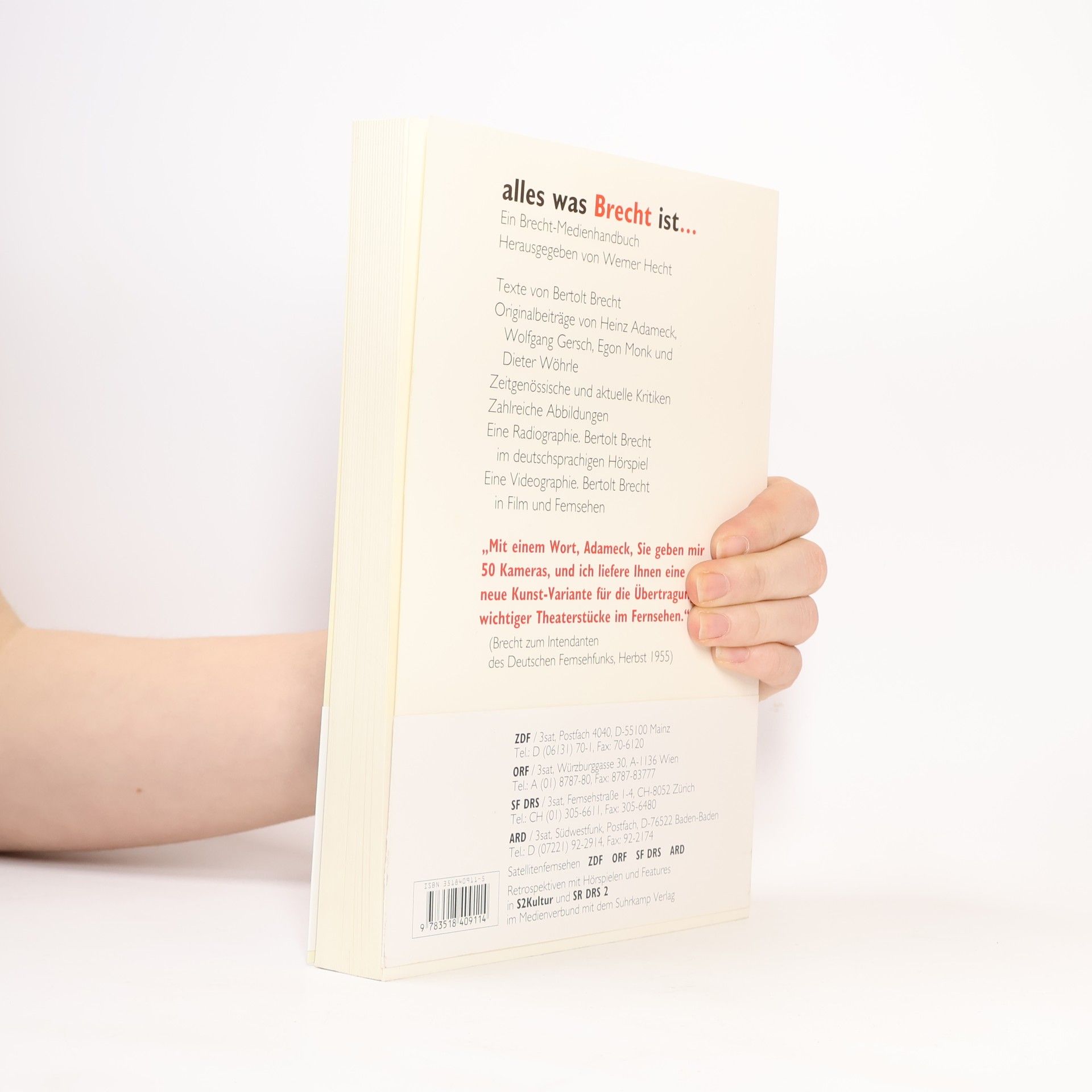 Texte von Bertolt Brecht Originalbeiträge von Heinz Adameck, Wolfgang Gersch, Egon Monk und Dieter Wöhrle Zeitgenössische und aktuelle Kritiken Zahlreiche Abbildungen Eine Radiographie. Bertolt Brecht im deutschsprachigen Hörspiel Eine Videographie. Bertolt Brecht in Film und Fernsehen
