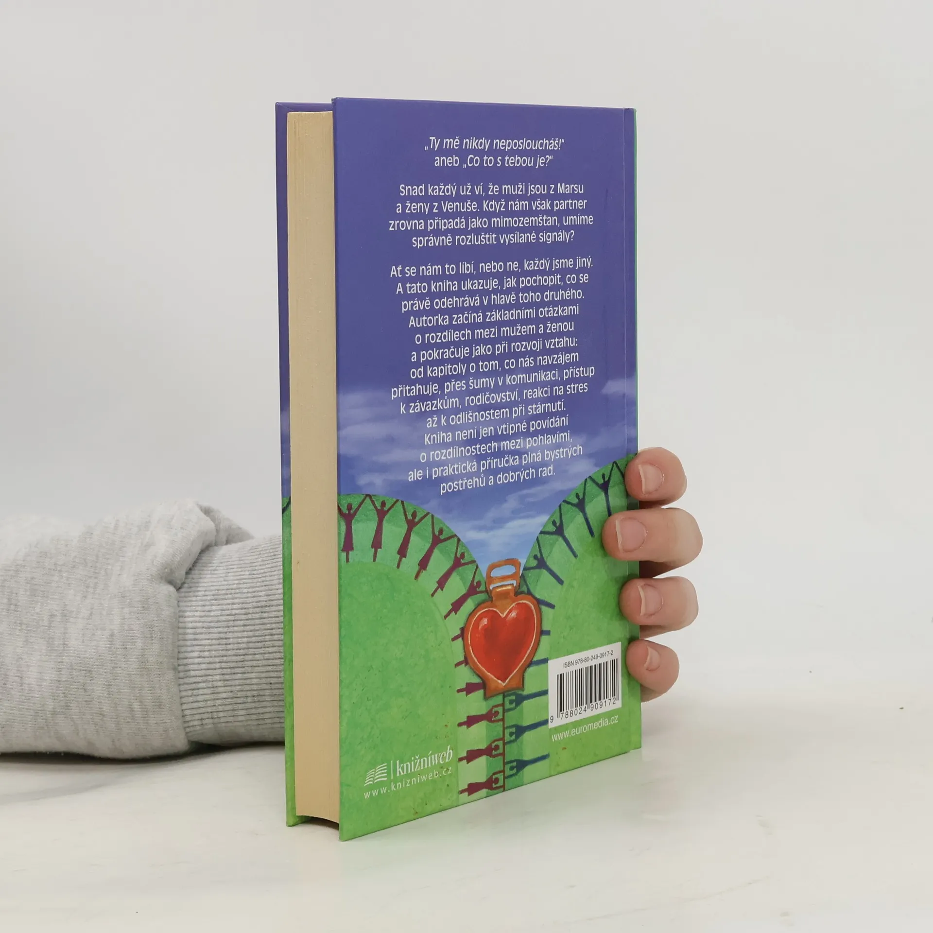 Psychologická příručka o odlišnostech mužů a žen, které se projevují v partnerských vztazích. Autorka vysvětluje, jak muži a ženy rozdílně přemýšlejí, jinak vnímají důležitost věcí a zcela odlišně vyhodnocují různé situace. Poskytuje informace o vyvíjejícím se vztahu mezi mužem a ženou, vzájemné přitažlivosti, sexuální touze, problémech v rodičovství, vztahu partnerů v penzi. Zajímavé, zároveň vtipné rady mohou pomoci vyřešit některé problémy, které vznikají z odlišnosti mezi příslušníky obou pohlaví.