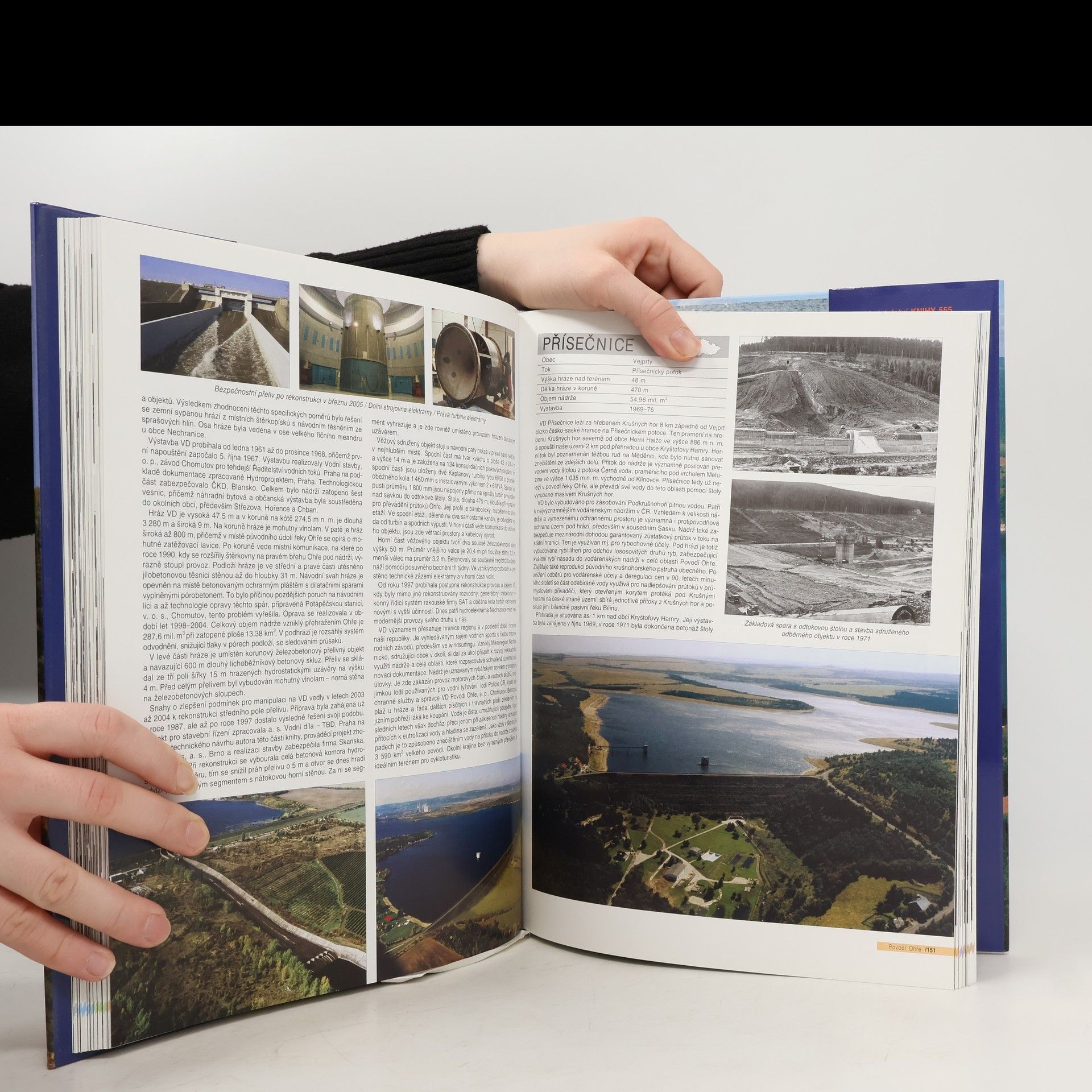Výpravná publikace vůbec poprvé přináší ucelený soupis všech cca 130 přehrad na území České republiky. Představuje čtenáři jednotlivé stavby vodních děl od svého vzniku přes budování až po současný stav. Kniha je členěna dle jednotlivých povodí: Labe, Vltava, Ohře, Morava a Odra. Publikace bohatě vybavená obrazovým materiálem (dobové fotografie, historické pohlednice, letecké snímky, apod.) přibližuje vývoj vodních děl včetně interiérů těles hrází a jejich technického zázemí: elektráren, regulačních zařízení průtoku… Vedle technického popisu hrází populární formou seznamuje čtenáře s jednotlivými funkcemi těchto staveb, z nichž mnohé jsou vyhlášeny technickými památkami.