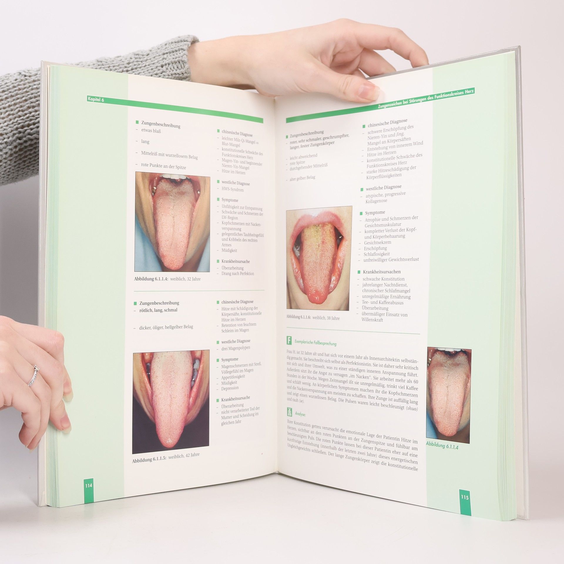Die Beherrschung der Zungendiagnostik ermöglicht eine präzise Beurteilung des Krankheitsverlaufs und die Erstellung von Prognosen. Zudem hilft sie, konstitutionelle energetische Stärken oder Schwächen zu erkennen. Der erste Band dieses Zungenatlasses bietet durch zahlreiche Bilder einen Einstieg und eine Vertiefung in die Methodik der Zungendiagnose in der Traditionellen Chinesischen Medizin. Theoretische Erklärungen zu den Ursachen von Zungenzeichen können anhand der Bilder überprüft werden. Besonders hervorzuheben ist, dass die meisten Bilder von westlichen Patienten stammen, deren Zungen Unterschiede zu asiatischen Zungen aufweisen. Dieser Band enthält unter anderem: Erläuterungen zur korrekten Vorgehensweise bei der Zungendiagnose, detaillierte Besprechungen von Zungenfarbe, -form und -belag, spezifische Erklärungen zu Zungenzeichen der Milz, Lunge, Nieren, Leber, Herzen und Magen, Fallbeispiele und Analysen, dokumentierte Darstellungen von Zungenveränderungen nach Akupunktur und Arzneimitteltherapie sowie ausführliche Indizes zur schnellen Auffindung von Zungenzeichen. Die Autorin hat 1980 als Bachelor of Acupuncture am International College of Oriental Medicine in England graduierte und war dort sieben Jahre als Dozentin tätig, bevor sie ihre eigene TCM-Praxis eröffnete und seit 1989 in Deutschland unterrichtet.