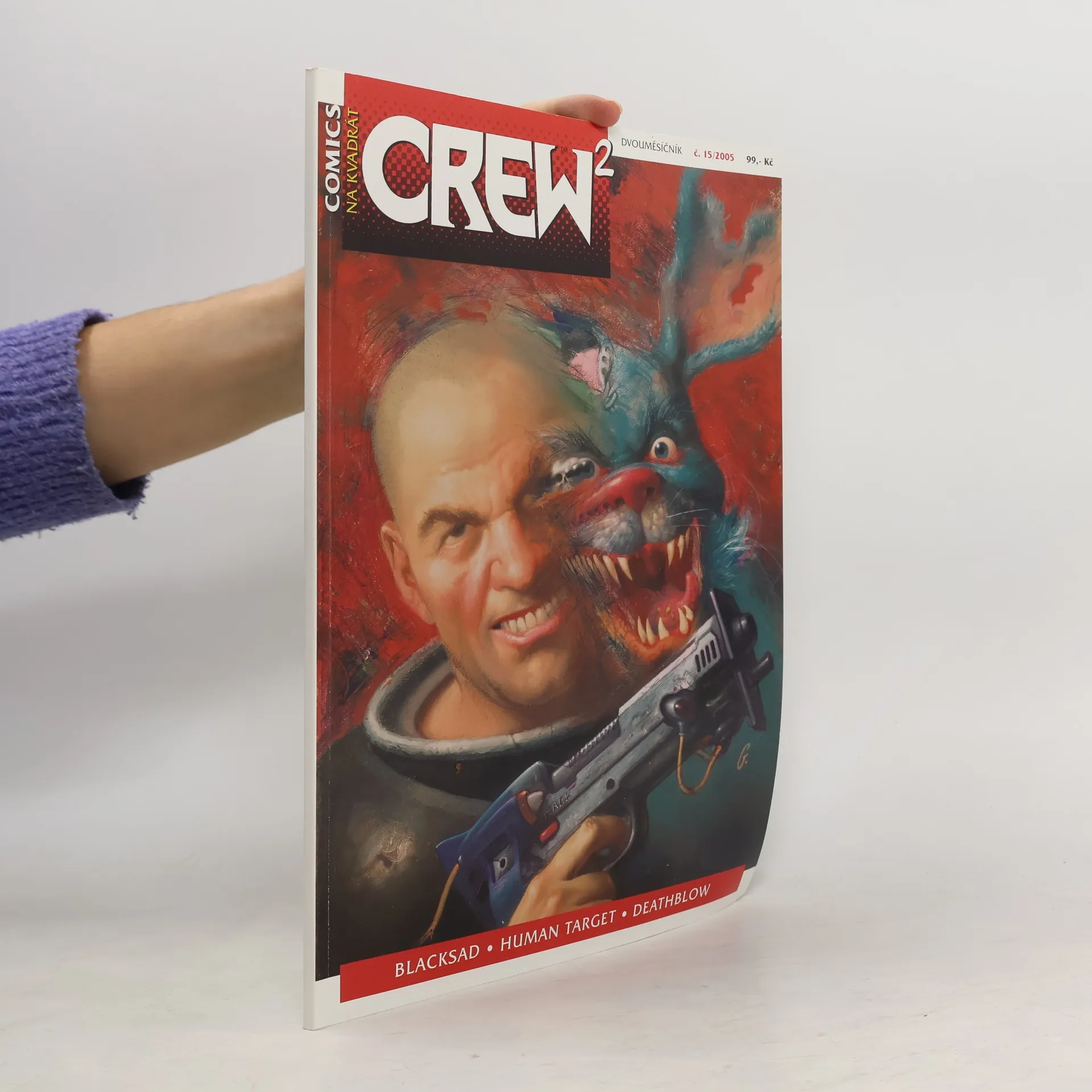 Comicsový časopis neboli comics na kvadrát. Comicsy: Human Target: Pětidenní milost - Peter Milligan, Cliff Chiang Blacksad: Národ ledu, část 2 - Juan Diaz Canales, Juanjo Guarnido Deathblow: Smrt v hrsti prachu - Allen Warner, Carlos D'Anda Publicistika: Crew stále pod zákonem (úvodník) - Jiří Pavlovský Vaše vnitřnosti v koši nekončí (listárna) Česká krev: Aktuality - Tomáš Prokůpek Mučírna Martina Němce - Martin Němec Z cizího krev teče: O americkém komiksu - Jiří Pavlovský Komiksové milníky: René Goscinny - Milan Krejčí Muž na pitevním stole: Peter Milligan - Ľudovít Plata Ochutnávka: Nitro těžkne glycerínem - Štěpán Kopřiva, Jiří Grus Mučírna Next Generation: Anatomie, část 2 - Klaus Janson Drůbky: Od Crewe do Crewe Drůbky: Komiksy v tomhle čísle Gyo - Ľudovít Plata