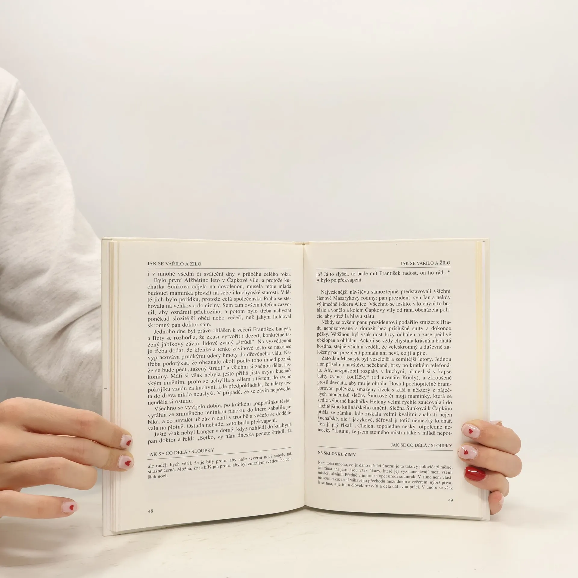 Autorka, dcera manželů, kteří byli zaměstnání u Čapků, prostřednictvím vzpomínek své matky přibližuje každodenní chod domácnosti velkého spisovatele. Osobnost Karla Čapka a jeho rodinu jsme poznali už z mnoha stránek. Autorka vybírá ze vzpomínek svých rodičů příběhy všedního dne a recepty z kuchyně Čapků. A co se obyčejně u Čapků vařilo? Klasická a lidová kuchyně, ovšem kvalitně a pečlivě připravená. Pod čarou celou knížkou probíhají úryvky z díla Karla Čapka.