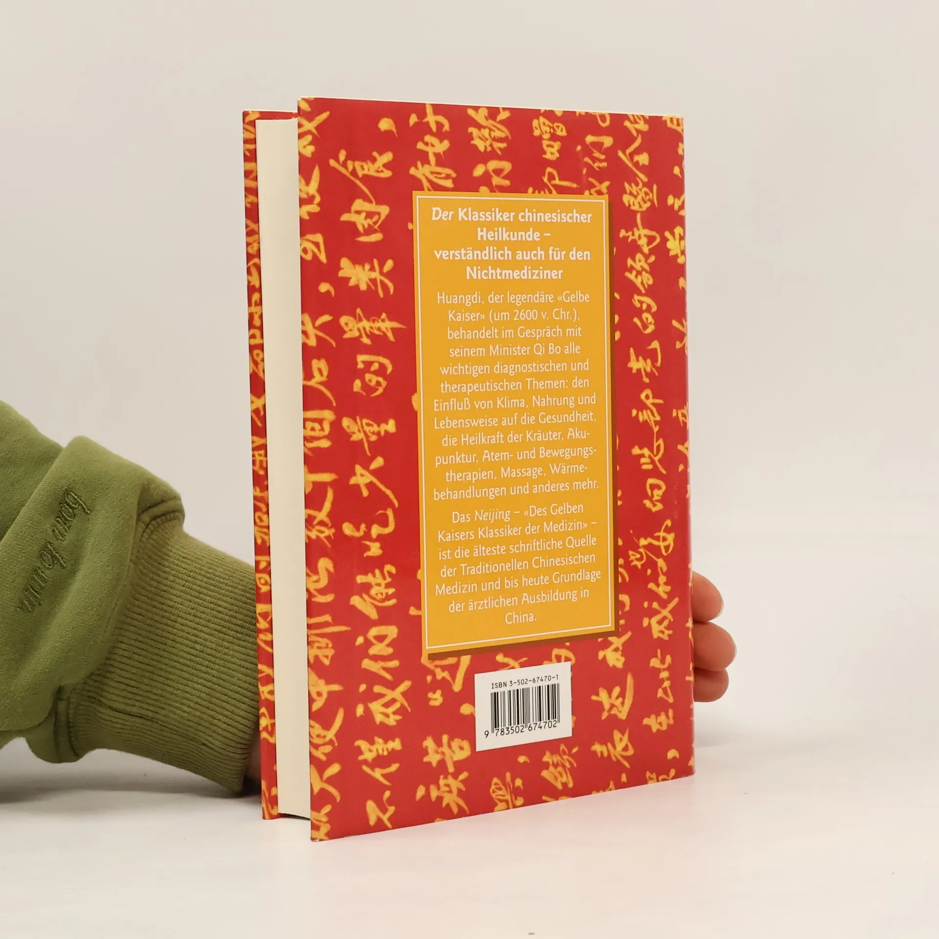 Während unsere Schulmedizin durch eine immer aufwendigere Technologie einzelne Symptome zu kurieren sucht, bemüht sich die Traditionelle Chinesische Medizin um eine ausgewogene Behandlung von Körper, Geist und Seele. Im Neijing – »Des Gelben Kaisers Klassiker der Medizin« – sind die theoretischen Grundlagen und praktischen Verfahren der Traditionellen Chinesischen Medizin auf exemplarische Weise zusammengefasst. Der Wissensschatz dieses großartigen Werkes soll von Huangdi, dem legendären »Gelben Kaiser« (um 2600 v. Chr.) zusammengetragen worden sein. In einem langen Lehrgespräch mit seinem Minister Qi Bo lotet er »die tiefsten Gründe der Natur, die Ursachen von Leben und Tod, von Krankheit und Gesundheit« aus. In 81 Kapiteln behandelt der Dialog zwischen Kaiser und Minister alle physiologischen, psychologischen, diagnostischen, therapeutischen und ethischen Fragen, die im Zusammenhang mit Gesunderhaltung, Krankheit und Heilung des Menschen von Bedeutung sind.