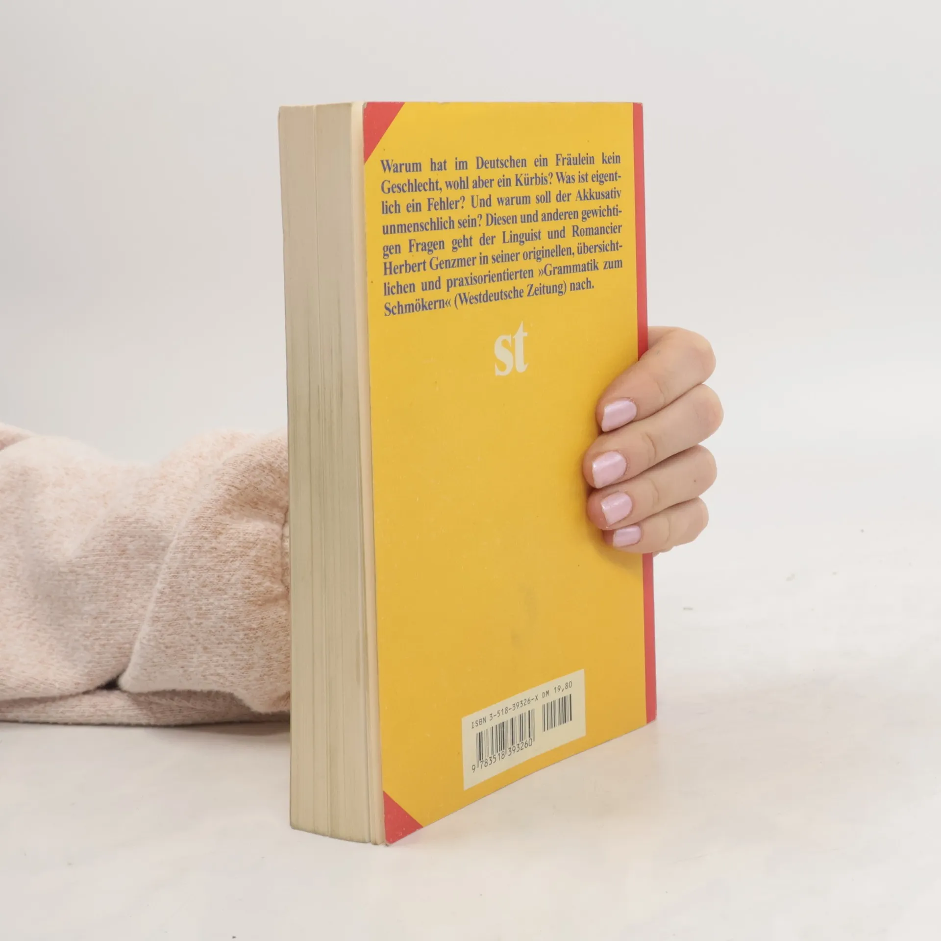 Herbert Genzmer versucht eine Brücke zu schlagen zwischen einer Grammatik, die Verhaltensregeln für die »korrekte« Reproduzierbarkeit von Sprache gibt (z. B. der Duden), und dem ständigen Wandel, in dem sich Sprache befindet. Seine Deutsche Grammatik zeigt den traditionellen Aufbau einer Sprachlehre, eignet sich zum Nachschlagen und zur raschen Information. Aber sie ist auch eine Grammatik anderer Art, denn sie spürt der Flexibilität der Sprache, ihrer Progressivität und Virtuosität nach, sie will anregen zur Reflexion über Grammatik und damit über Sprache selbst.