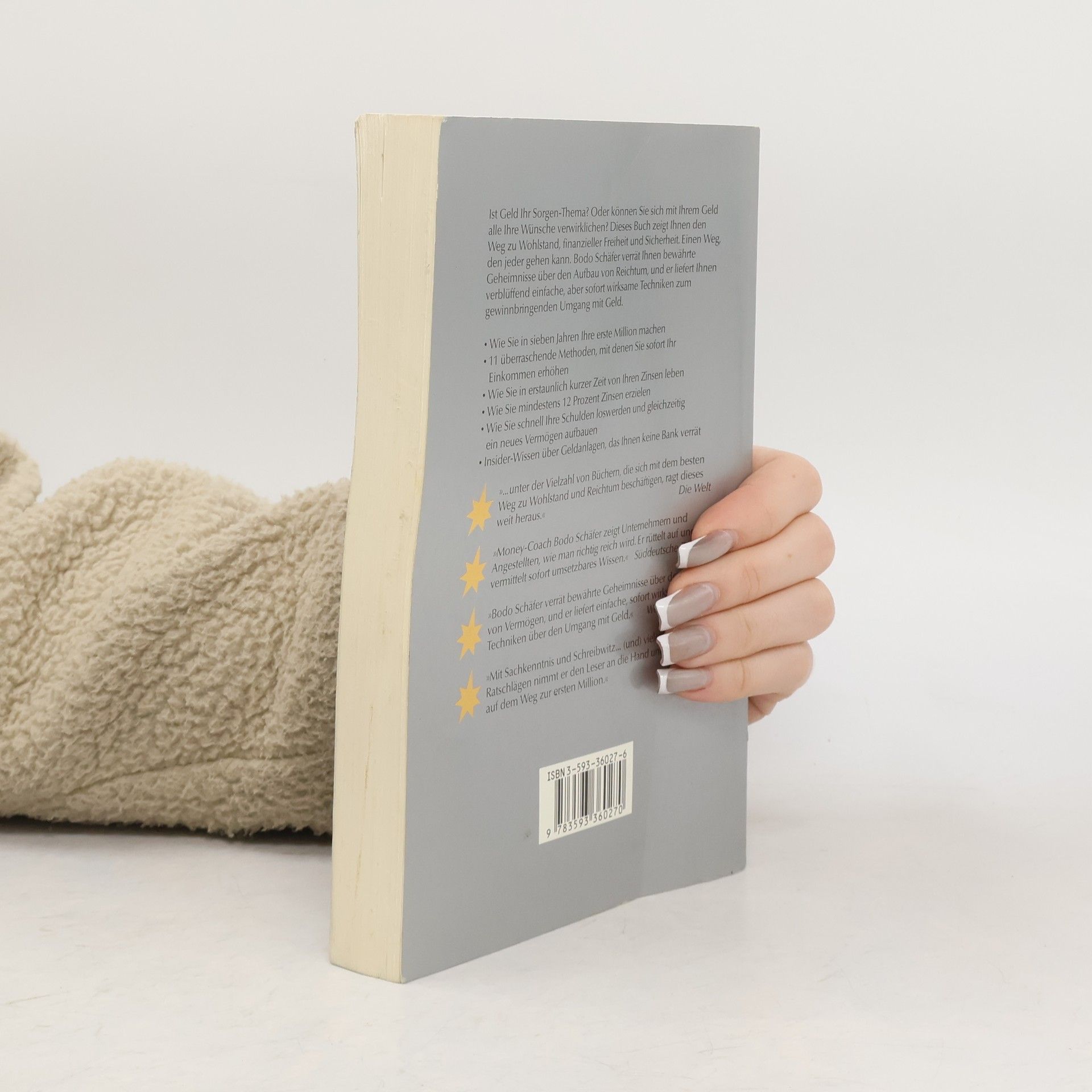 Ist Geld Ihr Sorgen-Thema? Oder können Sie sich mit Ihrem Geld alle Ihre Wünsche verwirklichen? Dieses Buch zeigt Ihnen den Weg zu Wohlstand, finanzieller Freiheit und Sicherheit. Einen Weg, den jeder gehen kann. Bodo Schäfer verrät Ihnen bewährte Geheimnisse über den Aufbau von Reichtum, und er liefert Ihnen verblüffend einfache, aber sofort wirksame Techniken zum gewinnbringenden Umgang mit Geld. - Wie Sie in sieben Jahren Ihre erste Million machen - 11 überraschende Methoden, mit denen Sie sofort Ihr Einkommen erhöhen - Wie Sie in erstaunlich kurzer Zeit von Ihren Zinsen leben - Wie Sie mindestens 12 Prozent Zinsen erzielen - Wie Sie schnell Ihre Schulden loswerden und gleichzeitig ein neues Vermögen aufbauen - Insider-Wissen über Geldanlagen, das Ihnen keine Bank verrät „ ... unter der Vielzahl von Büchern, die sich mit dem besten Weg zu Wohlstand und Reichtum beschäftigen, ragt dieses weit heraus.“ Die Welt „Money-Coach Bodo Schäfer zeigt Unternehmern und Angestellten, wie man richtig reich wird. Er rüttelt auf und vermittelt sofort umsetzbares Wissen.“ Süddeutsche Zeitung „Bodo Schäfer verrät bewährte Geheimnisse über den Aufbau von Vermögen, und er liefert einfache, sofort wirksame Techniken über den Umgang mit Geld.“ Welt am Sonntag „Mit Sachkenntnis und Schreibwitz ... (und) vielen konkreten Ratschlägen nimmt er den Leser an die Hand und geleitet ihn auf dem Weg zur ersten Million.“ Focus