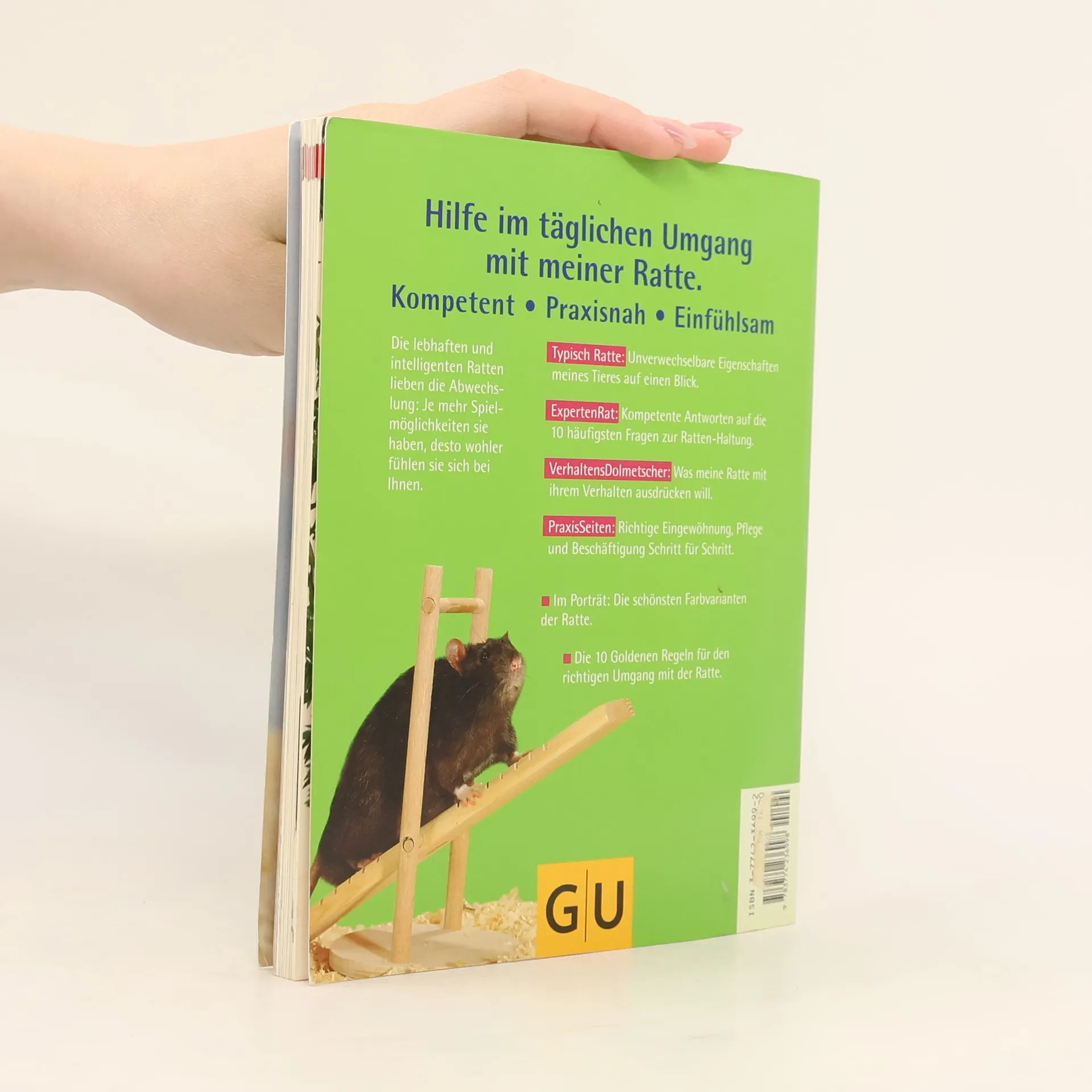 Ratten sind sehr intelligent und fassen schnell Zutrauen zu ihren Menschen. Wer sich für eine Ratte entscheidet, wird mit einem pfiffigen Heimtier belohnt, mit dem es nie langweilig wird. Autor Gerd Ludwig liefert in diesem Buch das Basiswissen über die richtige Haltung, Pflege und Beschäftigung von Ratten. Seine Erfahrung und viele Tipps machen diesen Ratgeber unverzichtbar für jeden Rattenhalter. Tolle Sonderseiten vermitteln das Wissen auf attraktive Weise, so hilft z. B. der "Verhaltensdolmetscher" bei der Kommunikation mit dem Tier. "Auf einen Blick" erklärt in Wort und Bild die Sinnesleistungen des Tieres oder wie der Rattenkäfig zum Wohlfühlzuhause wird. Unter "Tut gut - besser nicht!" erfahren Sie, auf was es in den ersten Tagen mit dem neuen Hausbewohner ankommt. Und die 10 GU-Erfolgstipps fassen die Informationen prägnant zusammen. Haben Sie nach der Lektüre noch Fragen? Dann schreiben Sie an den Verlag. Dank GU-Experten-Service haben Sie den direkten Draht zum Fachmann.