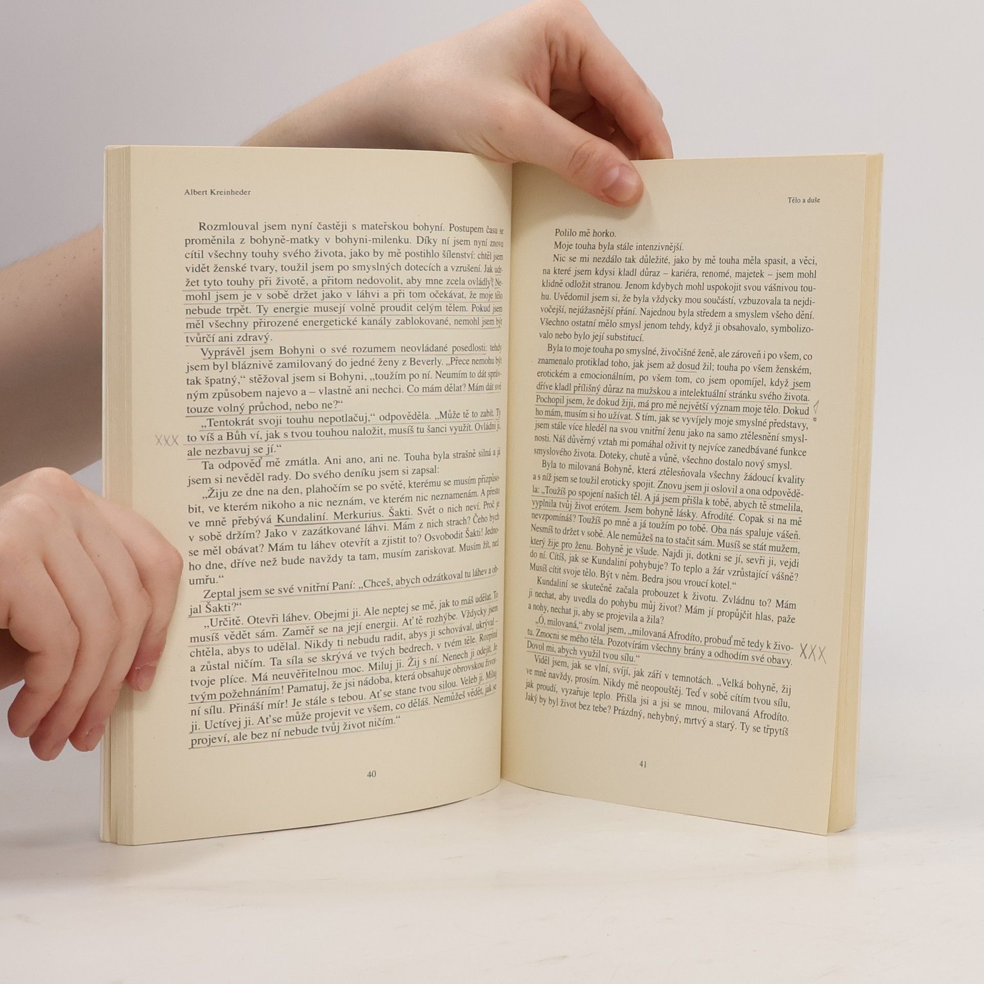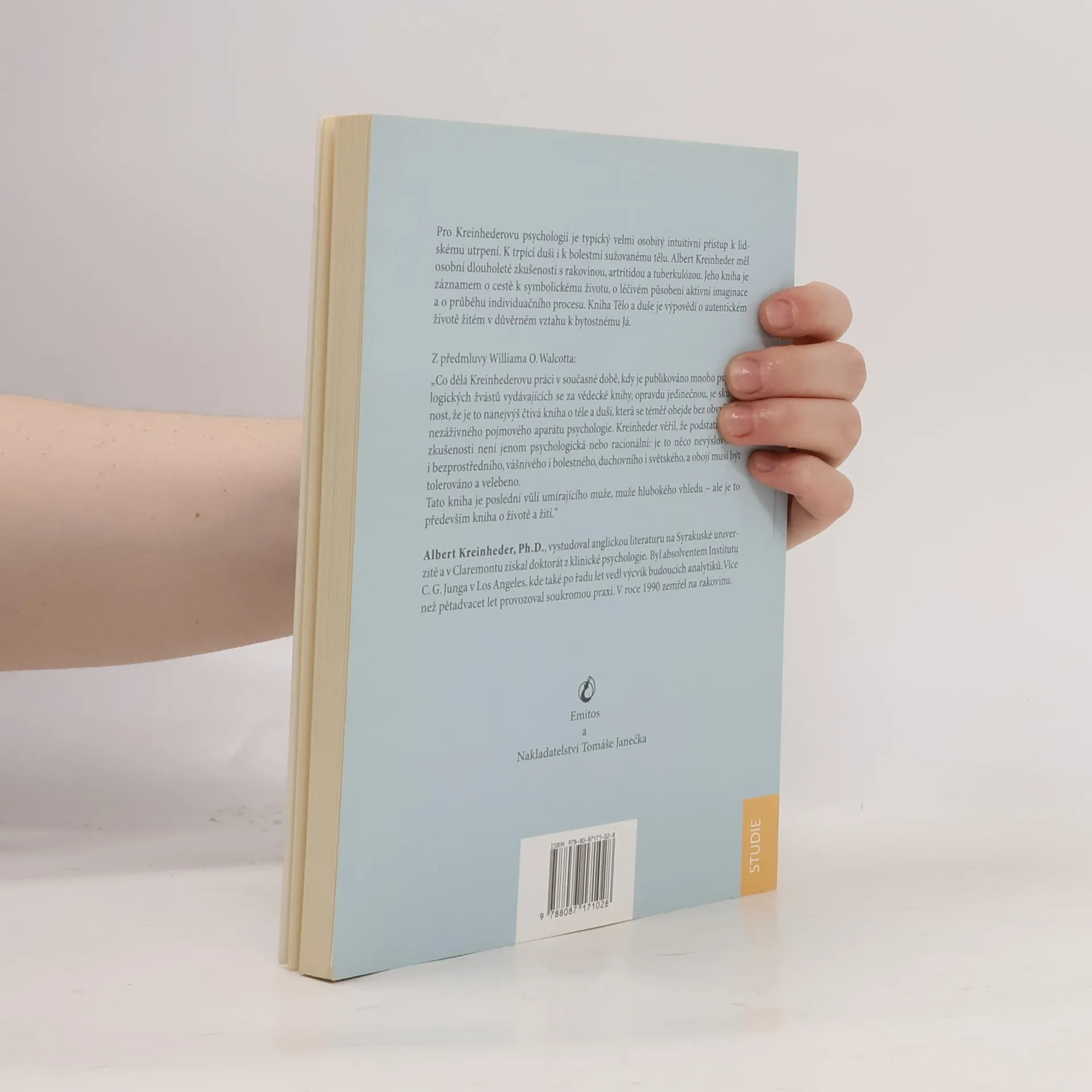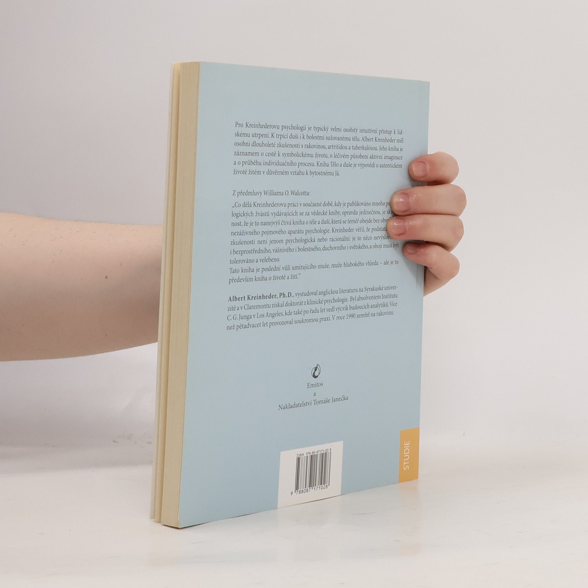 Podtitul: "Druhá strana nemoci" Pro Kreinhederovu psychologii je typický velmi osobitý intuitivní přístup k lidskému utrpení. K trpící duši i k bolestmi sužovanému tělu. Albert Kreinheder měl osobní dlouholeté zkušenosti s rakovinou, artritidou a tuberkulózou. Jeho kniha je záznamem o cestě k symbolickému životu, o léčivém působení aktivní imaginace a o průběhu individuačního procesu. Kniha Tělo a duše je výpovědí o autentickém životě žitém v důvěrném vztahu k bytostnému Já. Z předmluvy Williama O. Walcotta: „Co dělá Kreinhederovu práci v současné době, kdy je publikováno mnoho psychologických žvástů vydávajících se za vědecké knihy, opravdu jedinečnou, je skutečnost, že je to nanejvýš čtivá kniha o těle a duši, která se téměř obejde bez obvyklého nezáživného pojmového aparátu psychologie. Kreinheder věřil, že podstata lidské zkušenosti není jenom psychologická nebo racionální: je to něco nevýslovného i bezprostředního, vášnivého i bolestného, duchovního i světského, a obojí musí být tolerováno a velebeno. Tato kniha je poslední vůlí umírajícího muže, muže hlubokého vhledu – ale je to především kniha o životě a žití.“