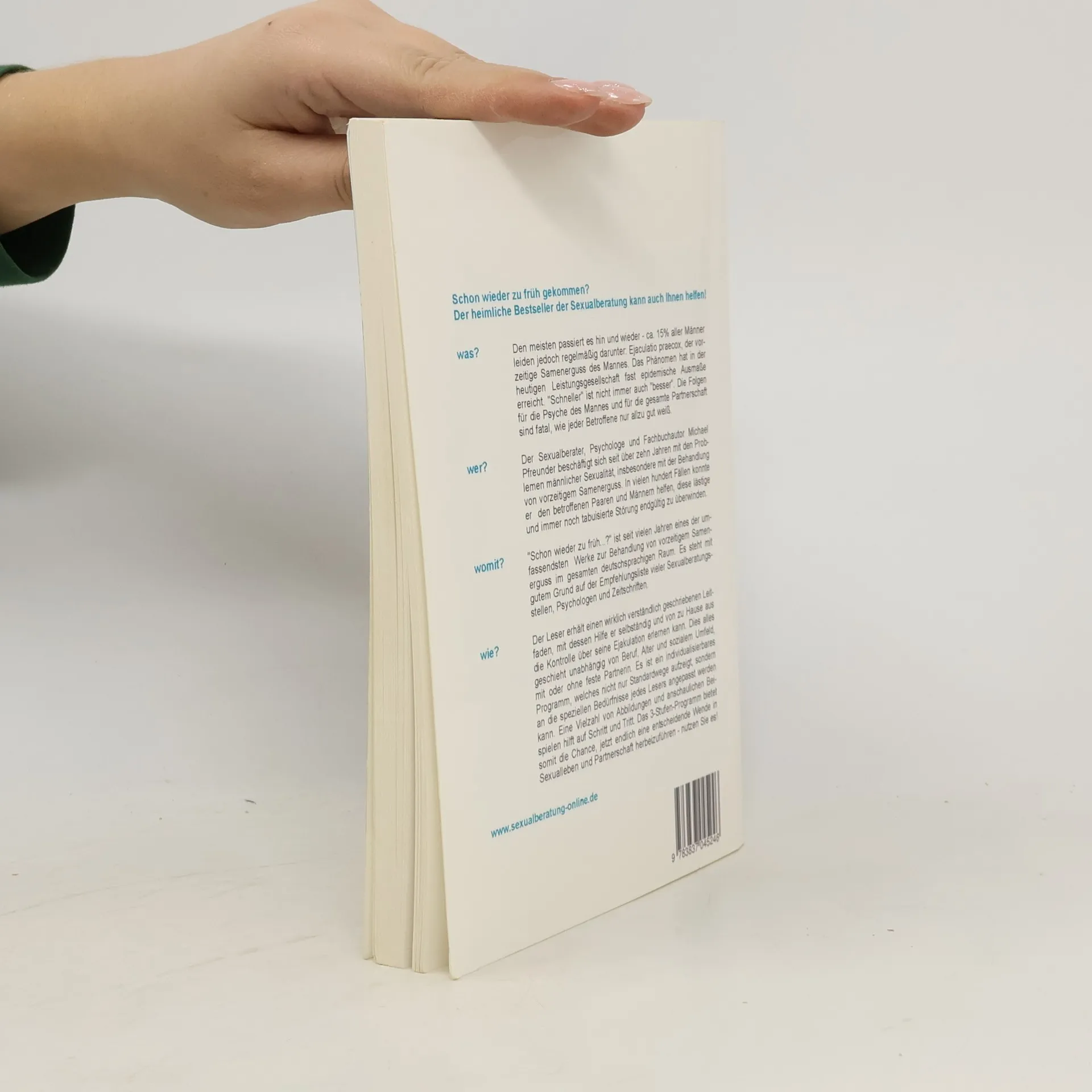 Viele Männer erleben gelegentlich vorzeitigen Samenerguss, doch etwa 15 Prozent leiden regelmäßig darunter. Dieses Problem hat in der heutigen Leistungsgesellschaft nahezu epidemische Ausmaße erreicht und ist nach Impotenz die zweithäufigste Störung männlicher Sexualität. Die Auswirkungen auf die Psyche des Mannes und die Partnerschaft sind gravierend. Im Gegensatz zur Impotenz lässt sich dieses Phänomen jedoch oft kurzfristig beheben. Der Psychologe und Sexualberater Michael Pfreunder hat über ein Jahrzehnt Erfahrung in der Behandlung männlicher Sexualprobleme und hat zahlreichen Paaren geholfen, diese Herausforderung zu meistern. Dabei setzt er nicht auf betäubende Salben oder andere Lust raubende Methoden, sondern auf ein individuell abgestimmtes Trainingsprogramm. Mit diesem Ansatz können Betroffene ihr Problem selbstständig angehen, unabhängig von einer festen Partnerin. Der Leser erhält einen klaren Leitfaden, um ejakulatorische Kontrolle zu erlangen, unabhängig von Beruf, Alter oder sozialem Umfeld. Innerhalb weniger Wochen können Männer lernen, ihren Samenerguss zu steuern. Zahlreiche Abbildungen und Beispiele begleiten das Programm und bieten die Möglichkeit, eine entscheidende Wende im Sexualleben und in der Partnerschaft herbeizuführen.