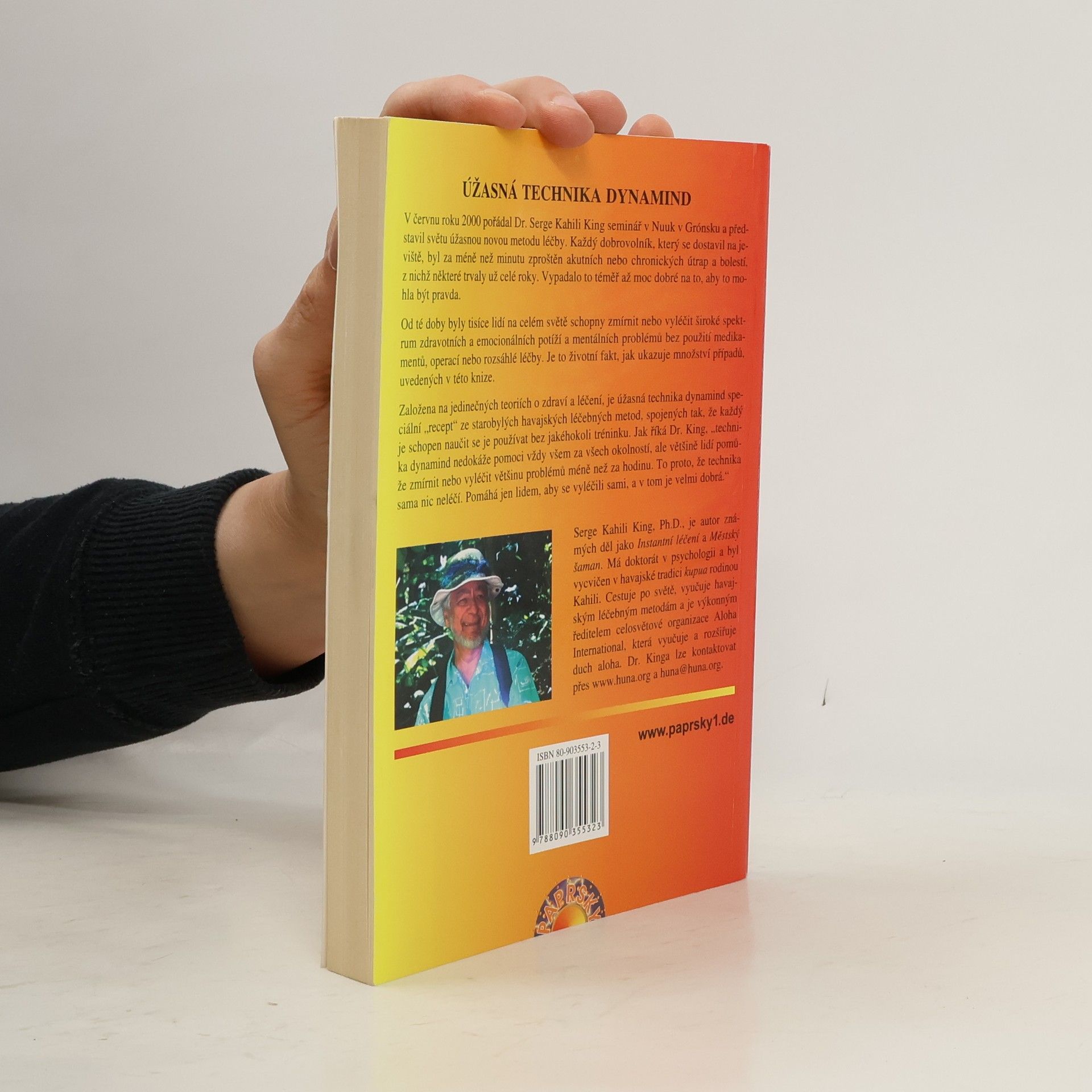 V červnu roku 2000 pořádal Dr. Serge Kahili King seminář v Nuuk v Grónsku a představil světu úžasnou novou metodu léčby. Každý dobrovolník, který se dostavil na jeviště, byl za méně než minutu zproštěn akutních nebo chronických útrap a bolestí, z nichž některé trvaly už celé roky. Vypadalo to téměř až moc dobré na to, aby to mohla být pravda. Od té doby byly tisíce lidí na celém světě schopny zmírnit nebo vyléčit široké spektrum zdravotních a emocionálních potíží a mentálních problémů bez použití medikamentů, operací nebo rozsáhlé léčby. Je to životní fakt, jak ukazuje množství případů, uvedených v knize. Založena na jedinečných teoriích o zdraví a léčení, je úžasná technika dynamind speciální „recept“ ze starobylých havajských léčebných metod, spojených tak, že každý je schopen naučit se je používat bez jakéhokoli tréninku. Jak říká Dr. King, „technika dynamind nedokáže pomoci vždy všem za všech okolností, ale většině lidí pomůže zmírnit nebo vyléčit většinu problémů méně než za hodinu. To proto, že technika sama nic neléčí. Vše, co dělá, je, že pomáhá lidem, aby se vyléčili sami, a v tom je velmi dobrá.“
