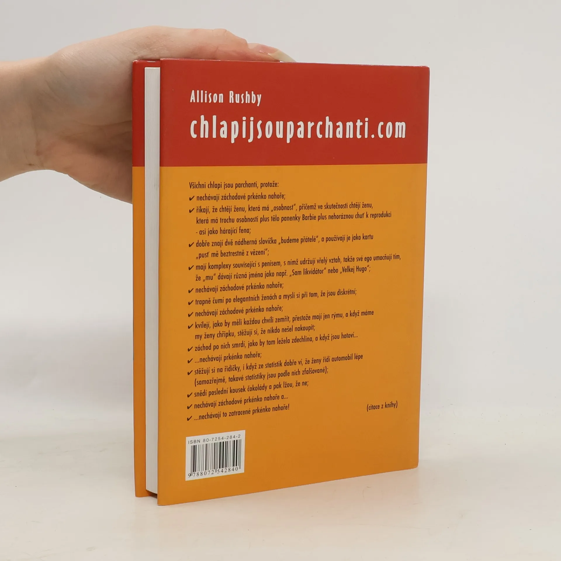 Humorně laděná kniha, jak si dvě kamarádky, kterým štěstí v lásce zrovna nepřeje, založí webové stránky chlapijsouparchanti.com, kam se prapůvodně chtějí jen svěřovat se svými bolístkami. Přes noc se však ze stránek stane hit a autorky zaznamenají mimořádnou návštěvnost. Kniha je sice tak trochu zaměřená proti mužům, ale nejedná se v žádném případě o feministické dílo. O lásce a vztazích na pozadí fenoménu zvaného internet.