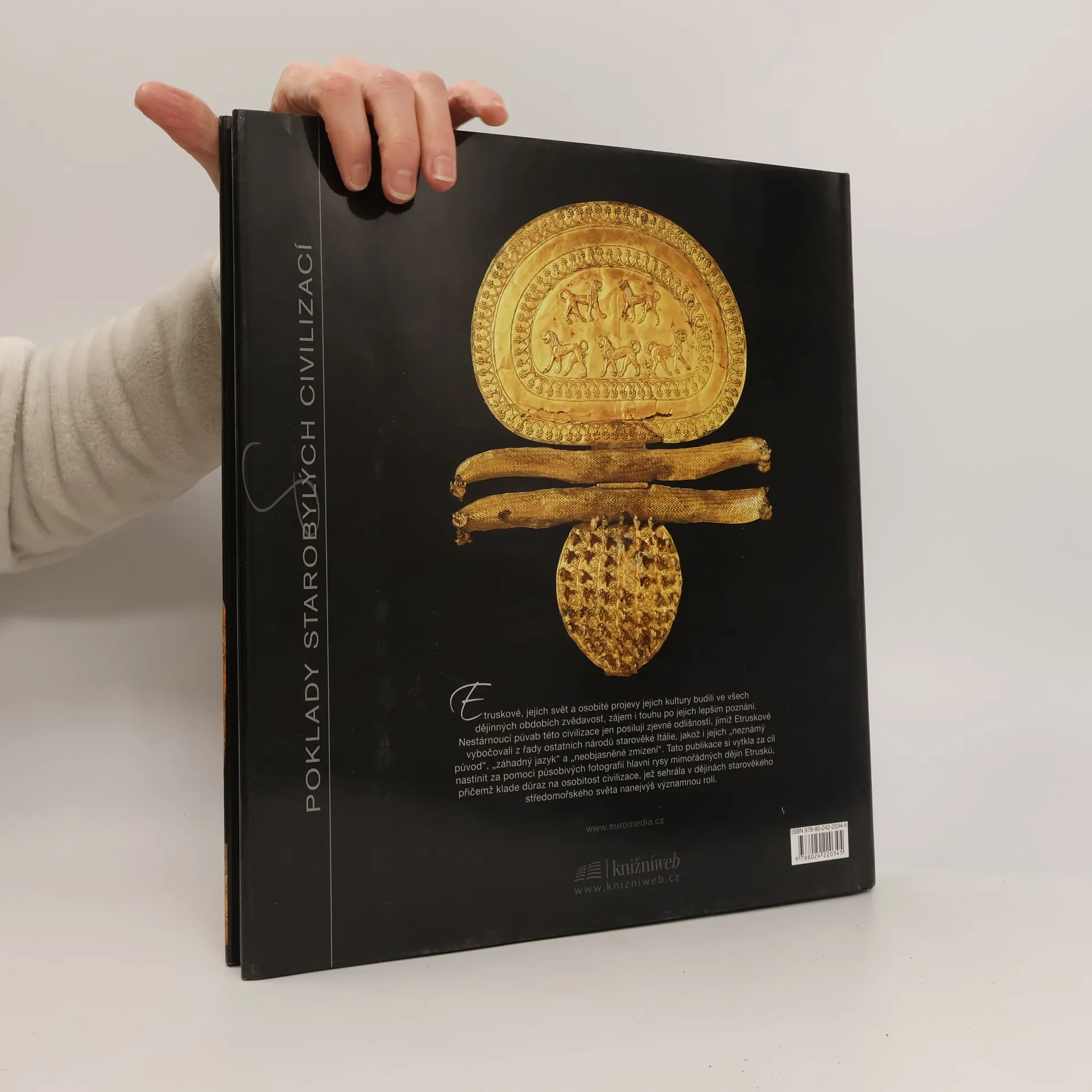 Etruskové, jejich svět a osobité projevy jejich kultury budili ve všech dějinných obdobích zvědavost, zájem i touhu po jejich lepším poznání. Tato publikace si vytkla za cíl nastínit za pomoci věcného textu a působivých fotografií hlavní rysy mimořádných dějin Etrusků, přičemž klade důraz na osobitost civilizace, jež sehrála v dějinách starověkého středomořského světa nanejvýš významnou roli.