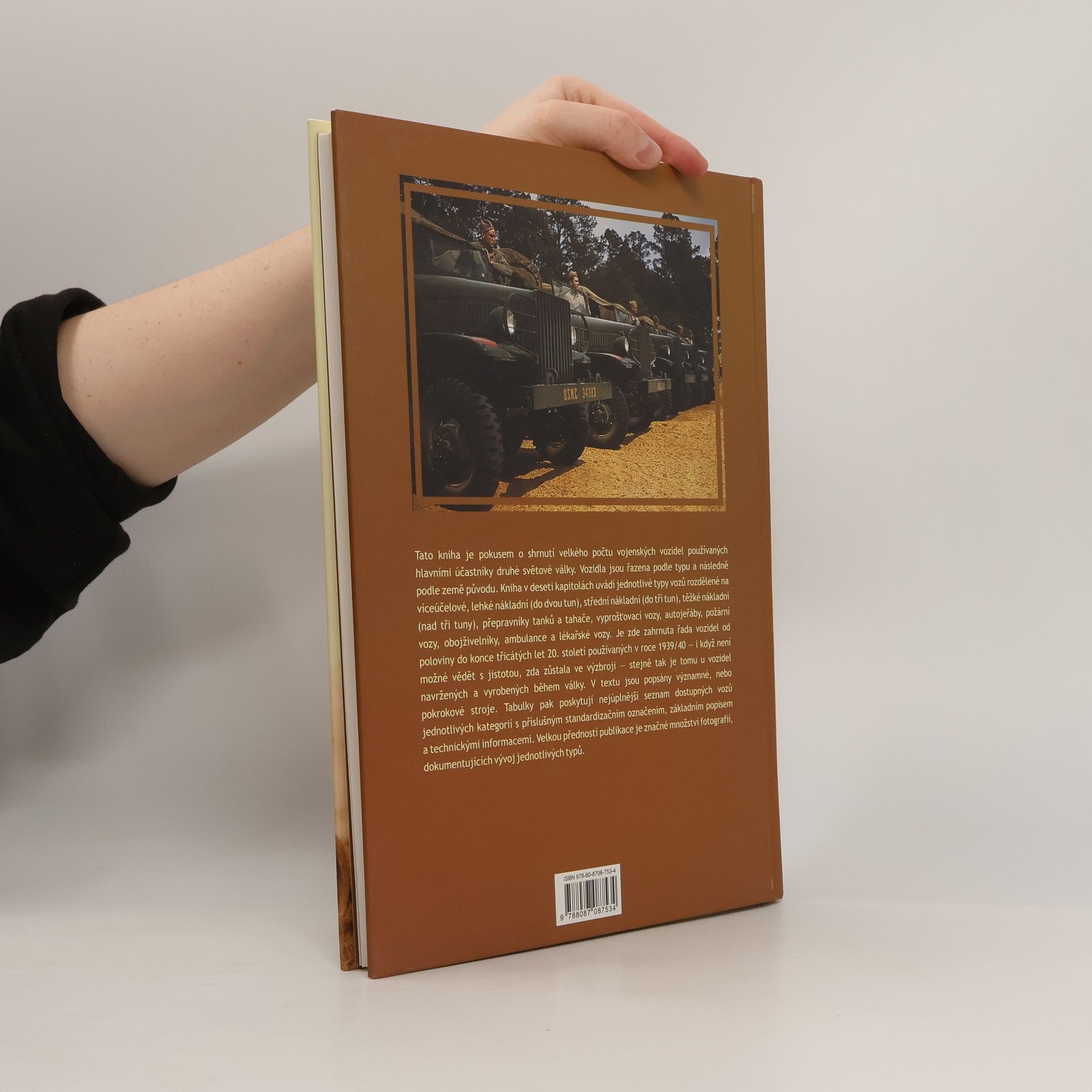 Tato kniha je pokusem o shrnutí velkého počtu vojenských vozidel používaných hlavními účastníky druhé světové války. Vozidla jsou řazena podle typu a následně podle země původu. Autor do knihy zařadil i řadu vozidel používaných od poloviny do konce třicátých let 20. století – i když není jisté, zda zůstala ve výzbroji – stejně tak je tomu u vozidel navržených a vyrobených během války. Tabulky pak poskytují seznam dostupných vozů jednotlivých kategorií s příslušným standardizačním označením, základním popisem a technickými informacemi. Velkou předností publikace je značné množství fotografií, dokumentujících vývoj jednotlivých typů.