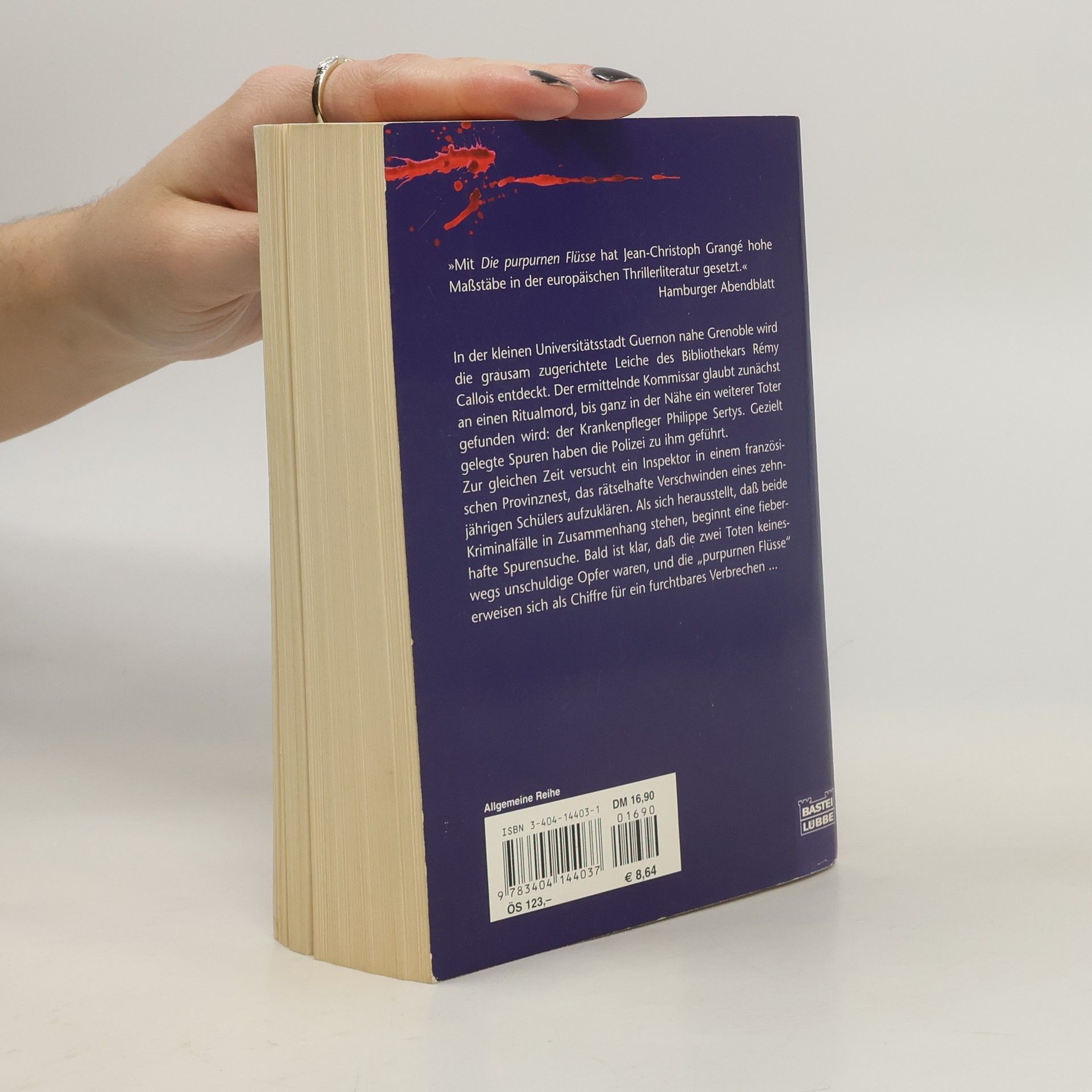 In der kleinen Universitätsstadt Guernon nahe Grenoble wird die grausam zugerichtete Leiche des Bibliothekars Rémy Callois entdeckt. Der ermittelnde Kommissar glaubt zunächst an einen Ritualmord, bis ganz in der Nähe ein weiterer Toter gefunden wird: der Krankenpfleger Philippe Sertys. Gezielt gelegte Spuren haben die Polizei zu ihm geführt. Zur gleichen Zeit versucht ein Inspektor in einem französischen Provinznest, das rätselhafte Verschwinden eines zehnjährigen Schülers aufzuklären. Als sich herausstellt, daß beide Kriminalfälle in Zusammenhang stehen, beginnt eine fieberhafte Spurensuche. Bald ist klar, daß die zwei Toten keineswegs unschuldige Opfer waren, und die purpurnen Flüsse erweisen sich als Chiffre für ein furchtbares Verbrechen ... \"Mit Die purpurnen Flüsse hat Jean-Christoph Grangé hohe Maßstäbe in der europäischen Literatur gesetzt.\" (Hamburger Abendblatt)