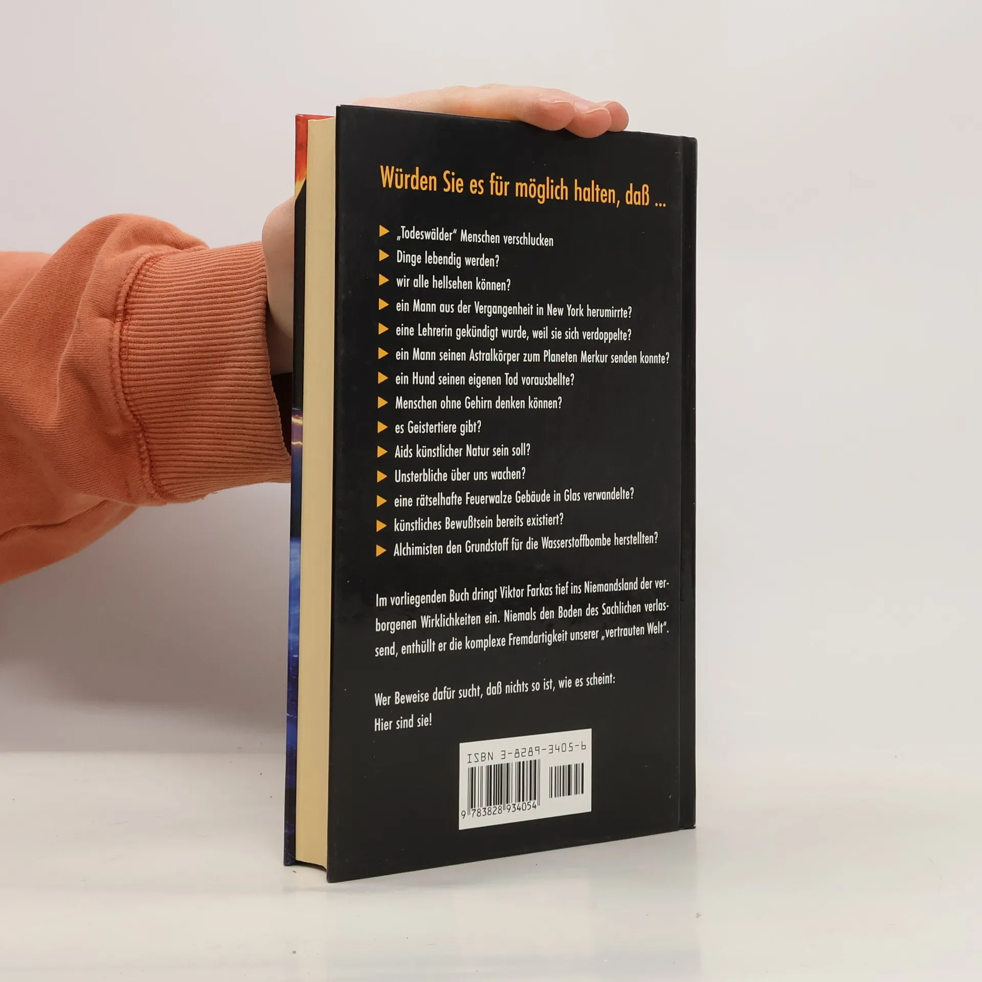 Würden Sie es für möglich halten, daß ... "Todeswälder" Menschen verschlucken - Dinge lebendig werden? - wir alle hellsehen können? - ein Mann aus der Vergangenheit in New York herumirrte? - ein Hund seinen eigenen Tod vorausbellte? - künstliches Bewußtsein bereits existiert? Im vorliegenden Buch dringt Viktor Farkas tief ins Niemandsland der verborgenen Wirklichkeiten ein. Niemals den Boden des Sachlichen verlassend, enthüllt er die komlexe Fremdartigkeit unserer "vertrauten Welt"