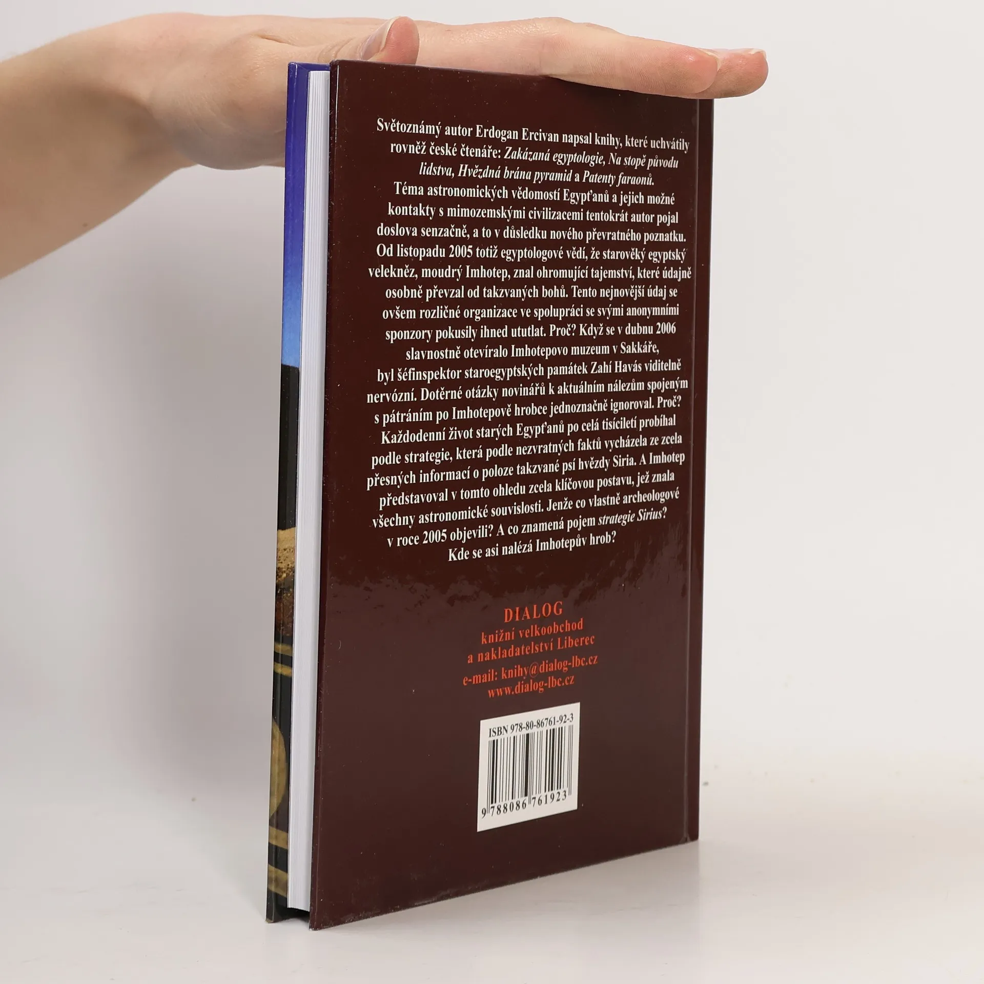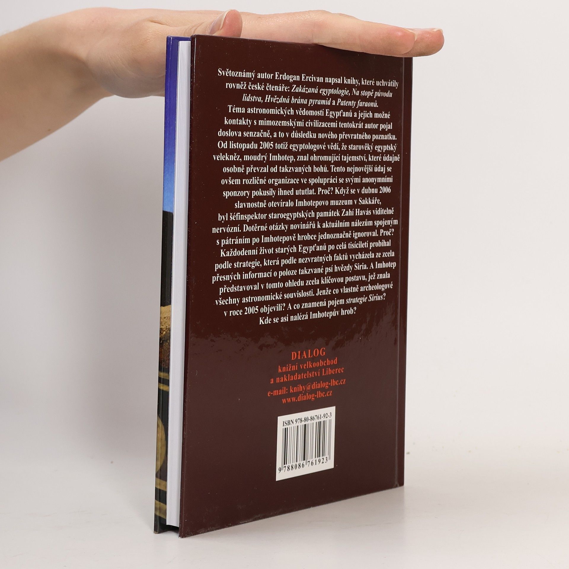 Tento světoznámý autor napsal knihy, které uchvátily rovněž české čtenáře: Zakázaná egyptologie, Na stopě původu lidstva, Hvězdná brána pyramid a Patenty faraonů. Téma astronomických vědomostí Egypťanů a jejich možné kontakty s mimozemskými civilizacemi tentokrát autor pojal doslova senzačně, a to v důsledku nového a převratného poznatku. Od listopadu 2005 totiž egyptologové vědí, že starověký egyptský velekněz, moudrý Imhotep, znal ohromující tajemství, které údajně osobně převzal od takzvaných bohů. Tento nejnovější údaj se ovšem rozličné organizace ve spolupráci se svými anonymními sponzory pokusily ihned ututlat. Proč? Když se v dubnu 2006 slavnostně otevíralo Imhotepovo muzeum v Sakkáře, byl šéfinspektor staroegyptských památek Zahi Havás viditelně nervózní. Dotěrné otázky novinářů k aktuálním nálezům spojeným s pátráním po Imhotepově hrobce jednoznačně ignoroval. Proč? Každodenní život starých Egypťanů po celá tisíciletí probíhal podle strategie, která podle nezvratných faktů vycházela ze zcela přesných informací o poloze takzvané psí hvězdy - Siria. A Imhotep představoval v tomto ohledu zcela klíčovou postavu, jež znala všechny astronomické souvislosti. Jenže co vlastně archeologové v roce 2005 objevili? A co znamená pojem strategie Sirius? Kde se asi nalézá Imhotepův hrob?