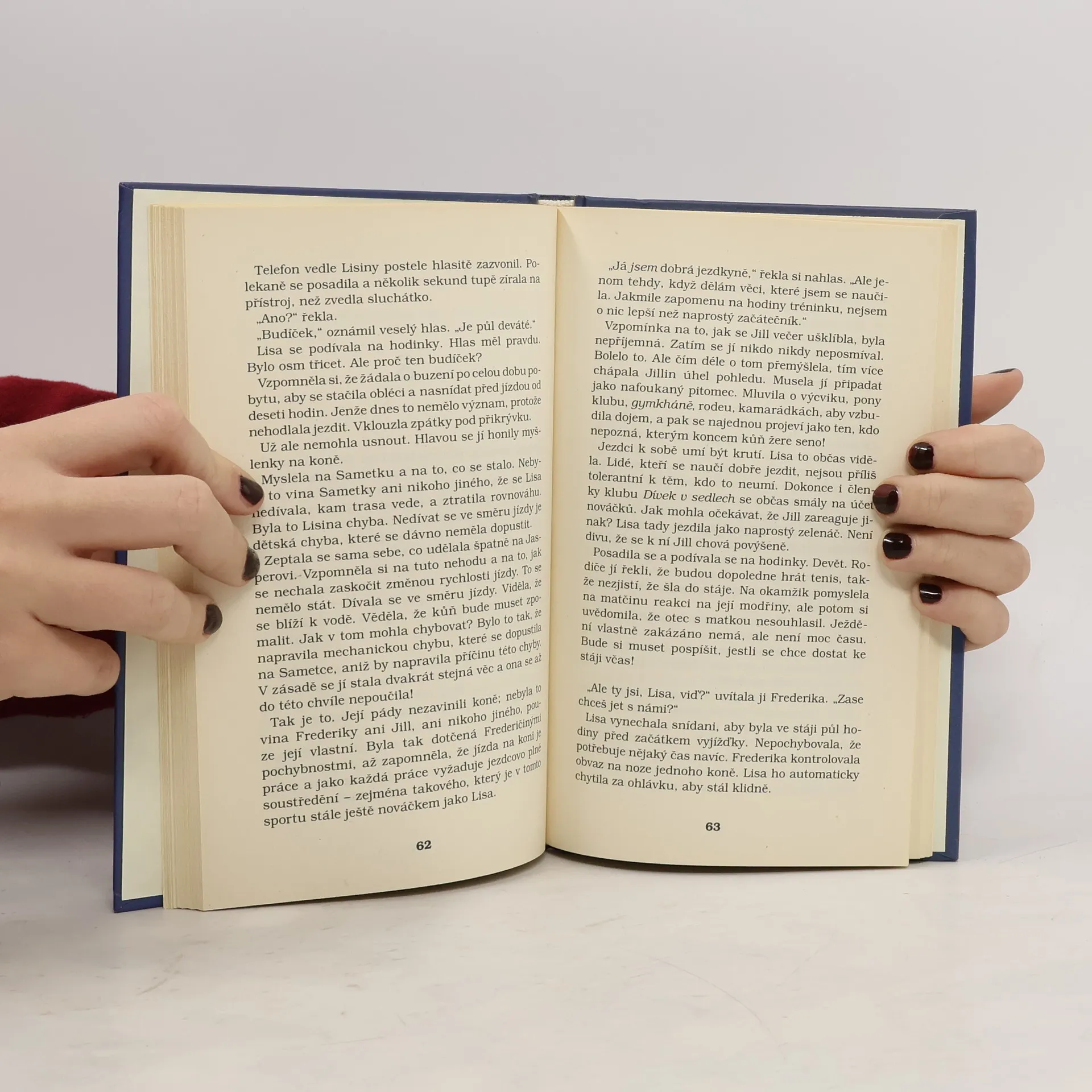 Dokážou členky klubu Dívek v sedlech přežít vánoční prázdniny, když je tráví odděleně? Stefi, Carol a Lisa jsou od doby, kdy založily klub Dívek v sedlech, nerozlučné. Proto jsou při pomyšlení, že o vánočních prázdninách nebudou spolu, trochu smutné. Ukáže se, že tyto prázdniny neproběhnou hladce ani u jdené z nich, zejména ne u Lisy. Hned první den ve stájích na ostrově San Marco ji postihne ostudný pád z koně. Jenže ve chvíli, kdy je její sebedůvěra na nejnižší úrovni, nebezpečná událost podrobí její jezdecké umění rozhodující zkoušce...