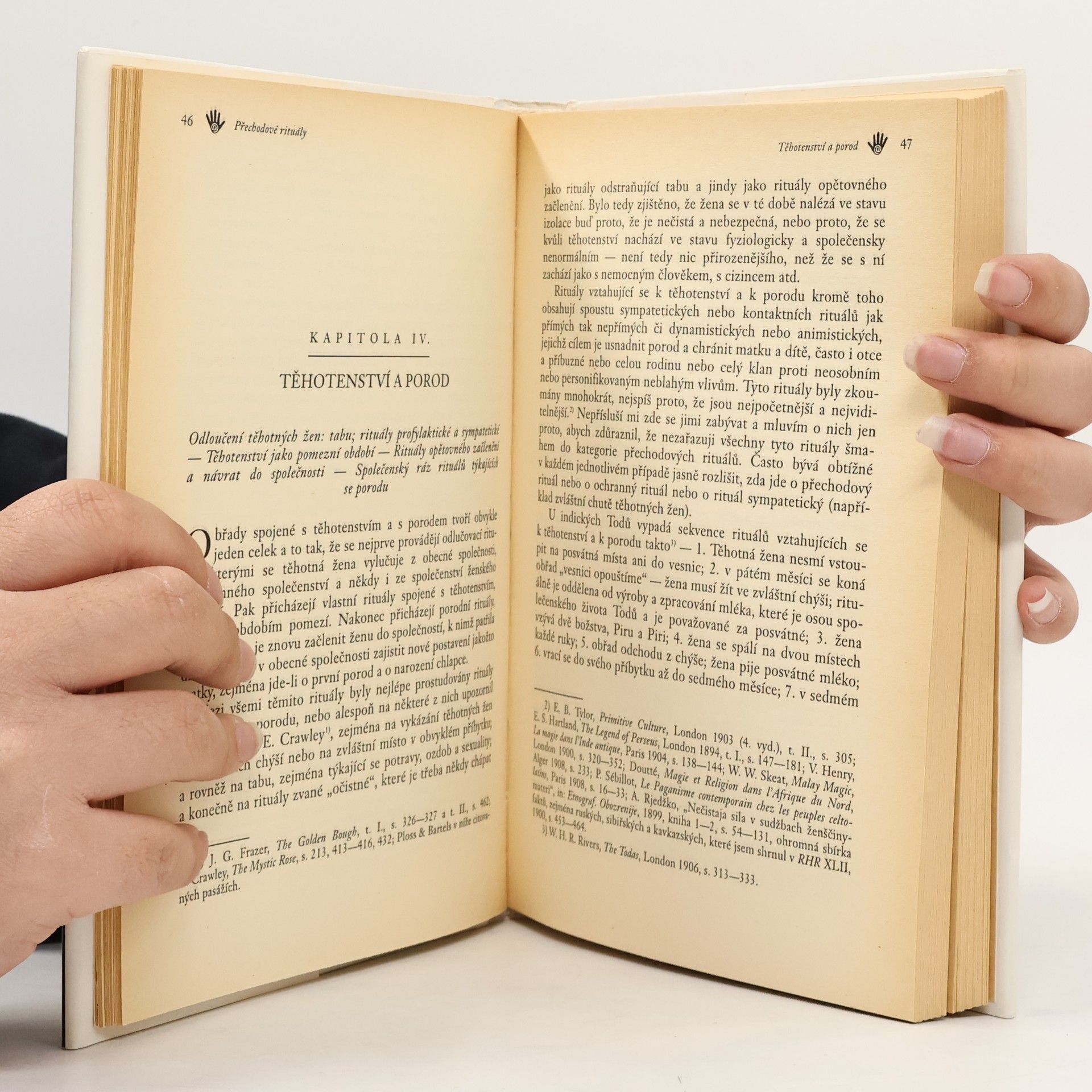 Podtitul: Systematické studium rituálů Podrobné studium struktury rituálů různých národů a skupin dovedlo Arnolda van Gennepa ke zjištění, že většina z nich (např. křest, svatba, pohřeb) se skládá ze třech samostatných a navazujících etap, které vyjadřují odloučení, pomezí a přijetí, neboli jednotlivé stavy při přechodu od jednoho sociokulturního postavení ke druhému. Souhrnným názvem přechodové rituály tak označil nejen iniciační sekvence od různých bratrstev a totemů, ale i obřadní akceptování nových oděvů, účesů, také rituály obřízky, tetování, zjizvování a propichování částí těla (náušnice atd.). Přestože valná většina těchto obřadů se stala nedílnou a důležitou částí různých náboženství, jejich světský sociokulturní základ je stále zřejmý.