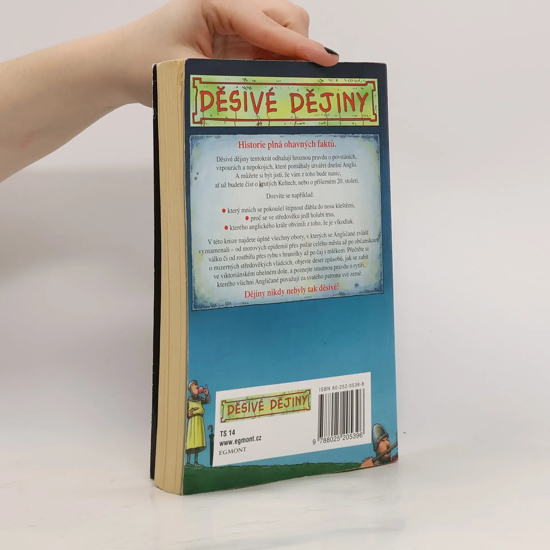 Přečtěte si hroznou pravdu o povstáních, vzpourách a nepokojích, které pomáhaly utvářet dnešní Anglii. A můžete si být jistí, že vám z toho bude pěkně nanic, ať už budete číst o krutých Keltech, nebo o příšerném 20. století. Dozvíte se například, který mnich se pokoušel štípnout ďábla do nosu kleštěmi, proč se ve středověku jedl holubí trus nebo kterého anglického krále obvinili z toho, že je vlkodlak. V této knize najdete úplně všechno, co má něco společného s Angličany - od moru přes požár až po občanskou válku nebo od rostbífu přes, rybu s hranolky až po šálek čaje. Přečtěte si o mizerných středověkých vládcích, objevte deset způsobů, jak se zabít ve viktoriánském uhelném dole a poznejte smutnou pravdu o rytíři Jiřím, kterého všichni Angličané považují za svatého patrona své země. Dějiny nikdy nebyly tak děsivé!