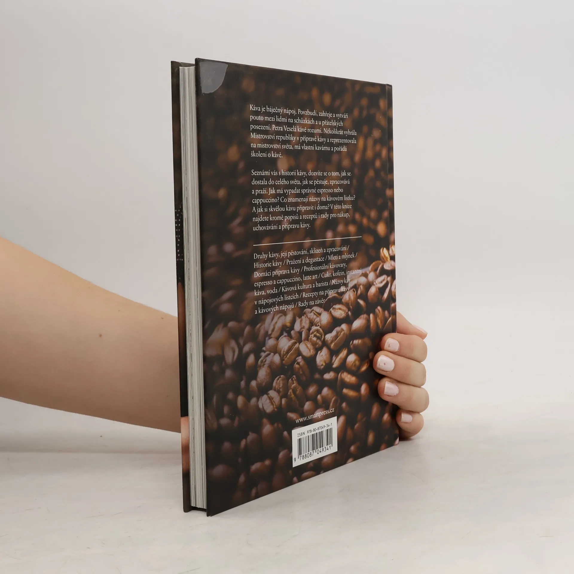Petra Veselá Vás v knize Kniha o kávě seznámi s historií kávy, dozvíte se o tom, jak se dostala do celého světa, jak se pěstuje, zpracovává a praží. Existují různé druhy a odrůdy kávy a každá z nich má svou specifickou chuť, to, jak káva chutná, ovlivňuje také pražení, mletí, uchovávání. Další část knihy se věnuje samotným nápojům. Jak má vypadat espresso nebo cappuccino? Co znamenají názvy na kávovém lístku? A jak si skvělou kávu připravit i doma? Tipy pro nákup, uchovávání a přípravu kávy, popisy a spousta skvělých receptů na přípravu různých druhů kávy. Káva je jedním z nejoblíbenějších nápojů. Povzbudí, zahřeje a vytváří pouto mezi lidmi na schůzkách a u přátelských posezení. Nabízí se bezpočet možností, jak ji připravit, ale také jak si s ní hrát