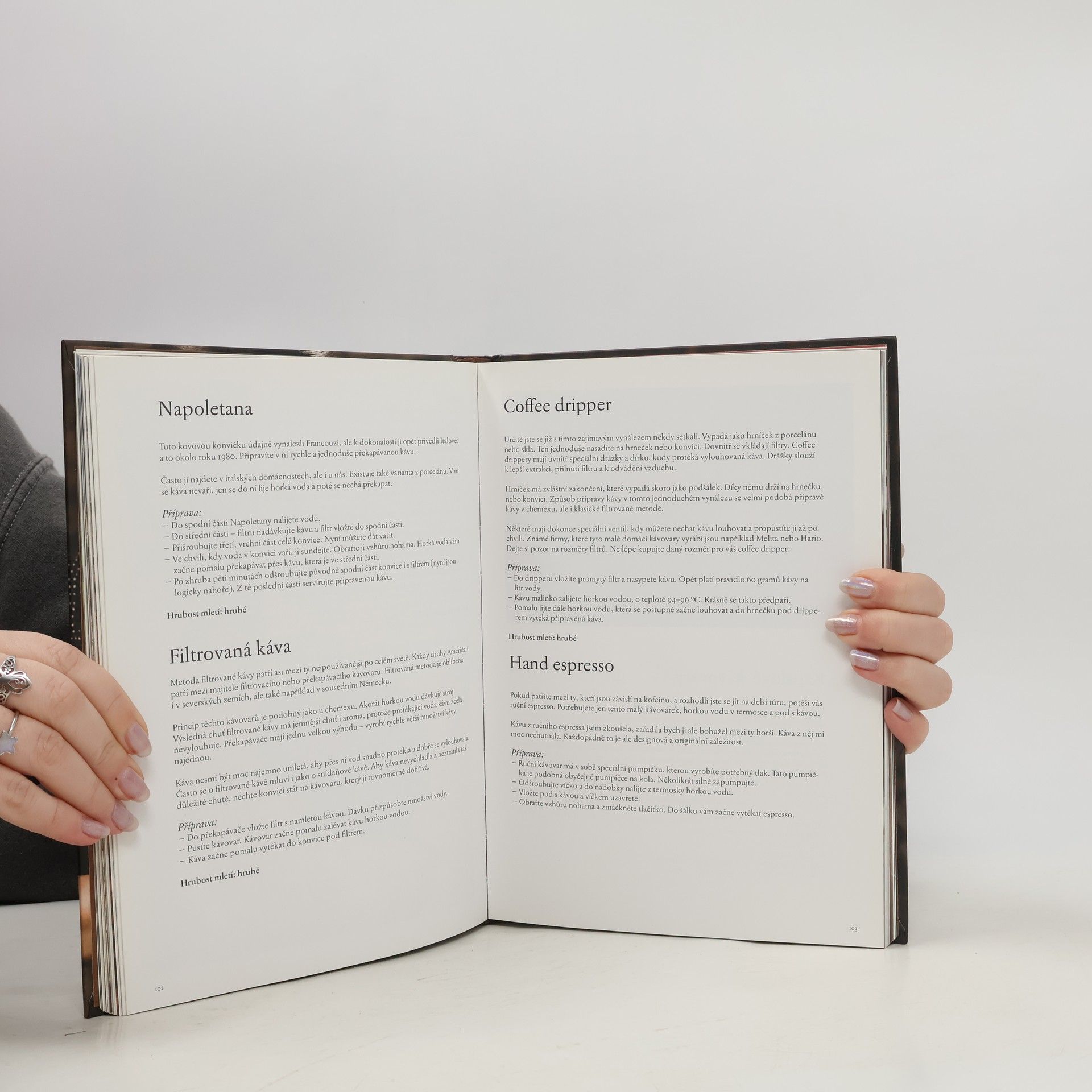 Petra Veselá Vás v knize Kniha o kávě seznámi s historií kávy, dozvíte se o tom, jak se dostala do celého světa, jak se pěstuje, zpracovává a praží. Existují různé druhy a odrůdy kávy a každá z nich má svou specifickou chuť, to, jak káva chutná, ovlivňuje také pražení, mletí, uchovávání. Další část knihy se věnuje samotným nápojům. Jak má vypadat espresso nebo cappuccino? Co znamenají názvy na kávovém lístku? A jak si skvělou kávu připravit i doma? Tipy pro nákup, uchovávání a přípravu kávy, popisy a spousta skvělých receptů na přípravu různých druhů kávy. Káva je jedním z nejoblíbenějších nápojů. Povzbudí, zahřeje a vytváří pouto mezi lidmi na schůzkách a u přátelských posezení. Nabízí se bezpočet možností, jak ji připravit, ale také jak si s ní hrát