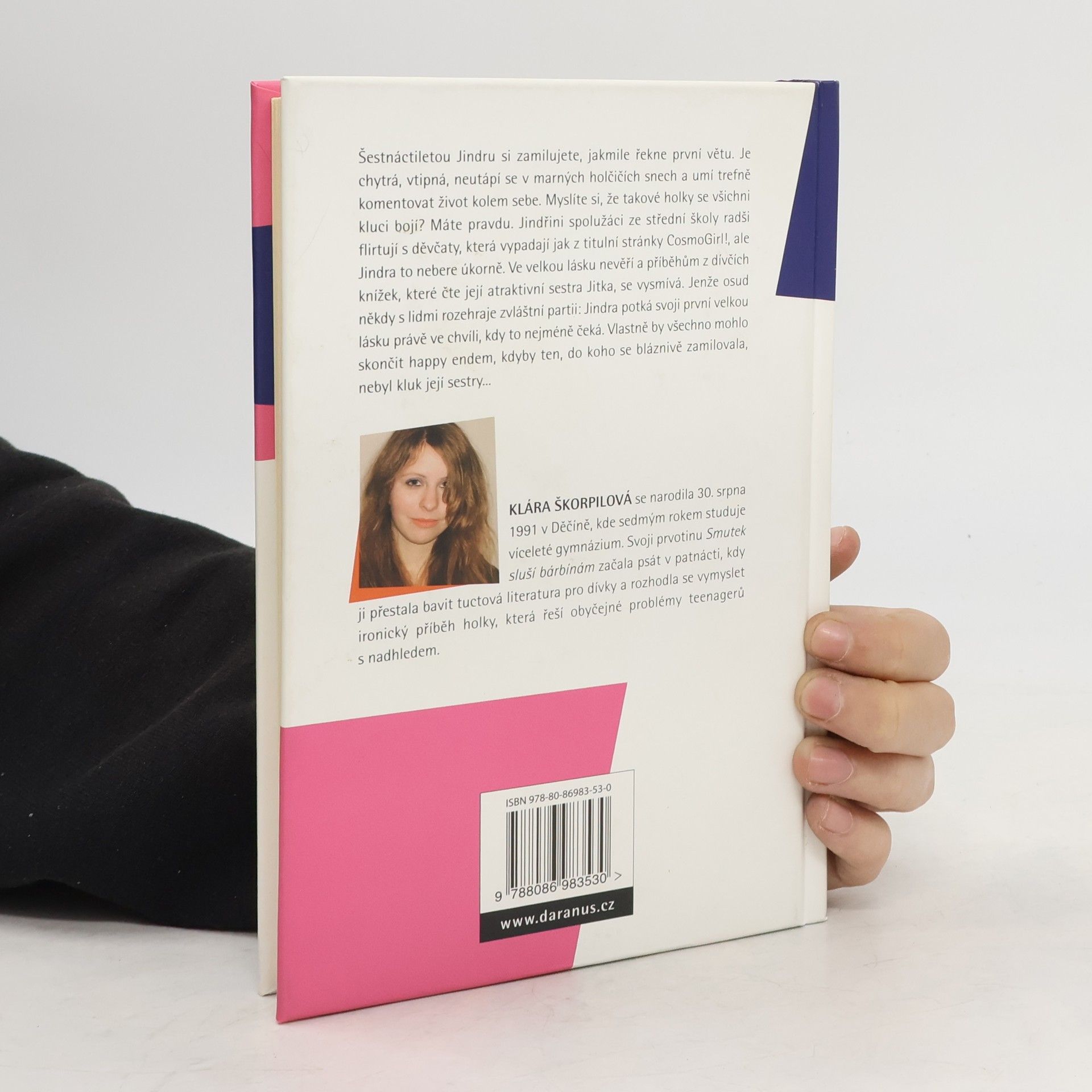 Šestnáctiletou Jindru si zamilujete, jakmile řekne první větu. Je chytrá, vtipná, neutápí se v marných holčičích snech a umí trefně komentovat život kolem sebe. Myslíte si, že takové holky se všichni kluci bojí? Máte pravdu. Jindřini spolužáci ze střední školy radši flirtují s děvčaty, která vypadají jak z titulní stránky Cosmogirl, ale Jindra se tím příliš netrápí. Ve velkou lásku nevěří a příběhům z dívčích knížek, které čte její atraktivní sestra Jitka, se vysmívá. Jenže osud někdy s lidmi rozehraje zvláštní partii: Jindra potká první velkou lásku právě ve chvíli, kdy to nejmíň čeká. Vlastně by všechno mohlo skončit happy endem, kdyby... Kdyby ten, do koho se bláznivě zamilovala, nebyl kluk její sestry. Prvotina mladé děčínské autorky Kláry Škorpilové (1991) zaujme živým jazykem i detailně prokreslenými charaktery jednotlivých postav.