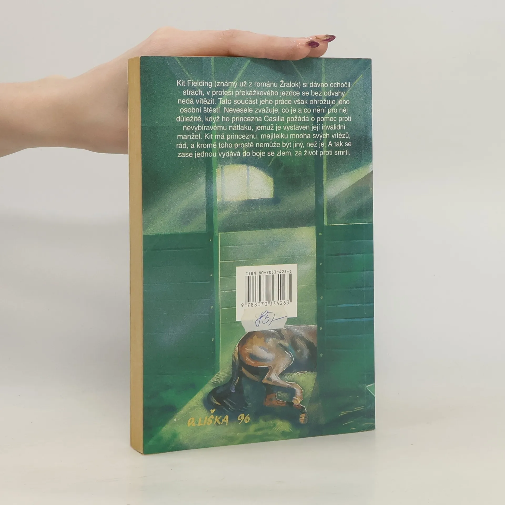 Kit Fielding (známý už z románu Žralok), si dávno ochočil strach, v profesi překážkového jezdce se bez odvahy nedá vítězit. Tato součást jeho práce však ohrožuje jeho osobní štěstí. Nevesele zvažuje, co je a co není pro něj důležité, když ho princezna Casilia požádá o pomoc proti nevybíravému nátlaku, jemuž je vystaven její invalidní manžel. Kit má princeznu, majitelku mnoha svých vítězů, rád, a kromě toho prostě nemůže být jiný, než je. A tak se zase jednou vydává do boje se zlem, za život proti smrti.