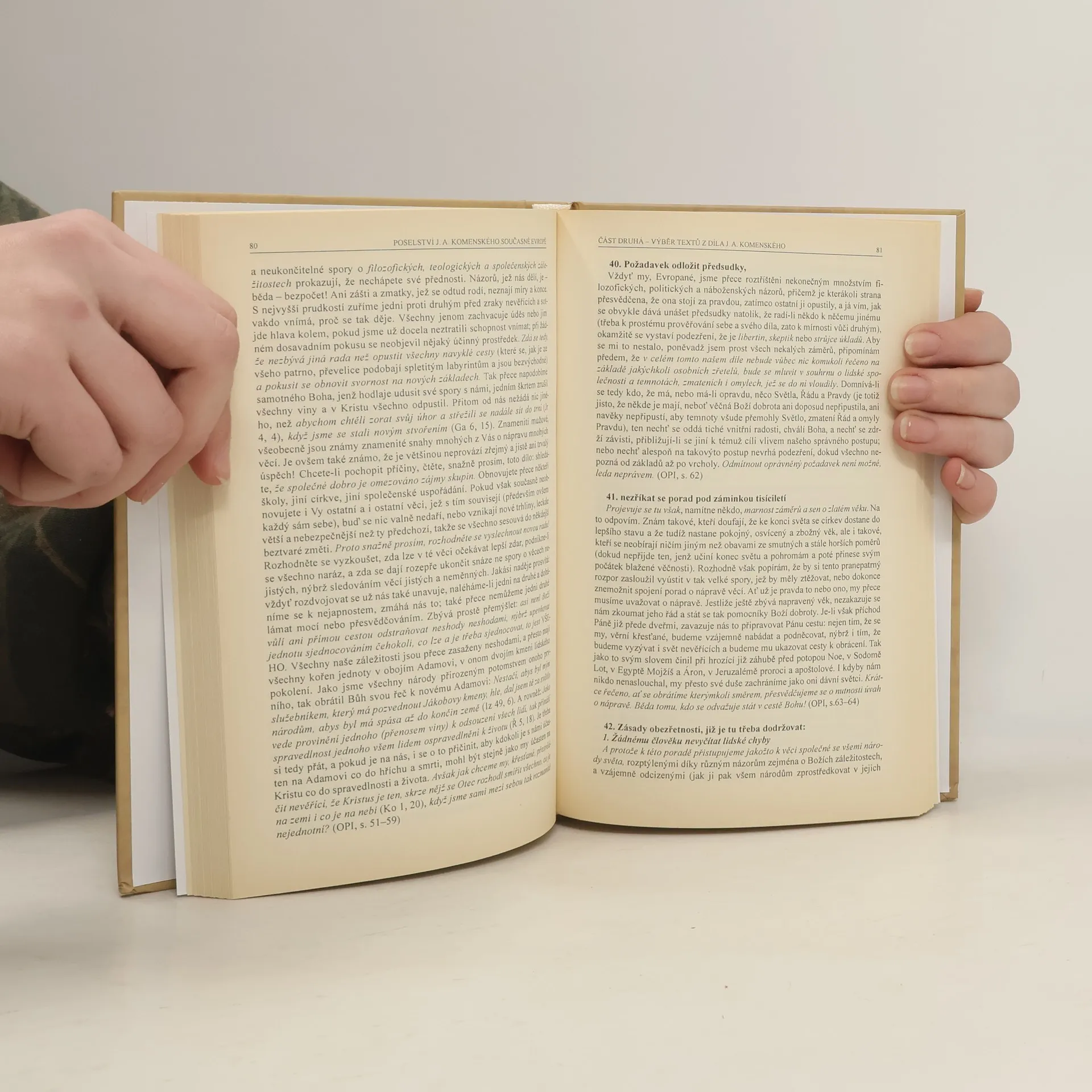 Studie předního evropského komeniologa, mimořádně čtivá a názorná, doplněná vybranými úryvky z díla J. A. Komenského. Při nahlédnutí na libovolnou stránku citací je zřetelná mimořádná mohutnost autorova ducha, který proniká skrze staletí a s břitkou aktualitou oslovuje jak jednotlivce, tak skupiny žijící v dnešní bouřlivé době. Vazba každého ze 1200 číslovaných výtisků je doplněna signovanou medailí s portrétem Jana Amose od akad. sochaře Andrého Víchy.