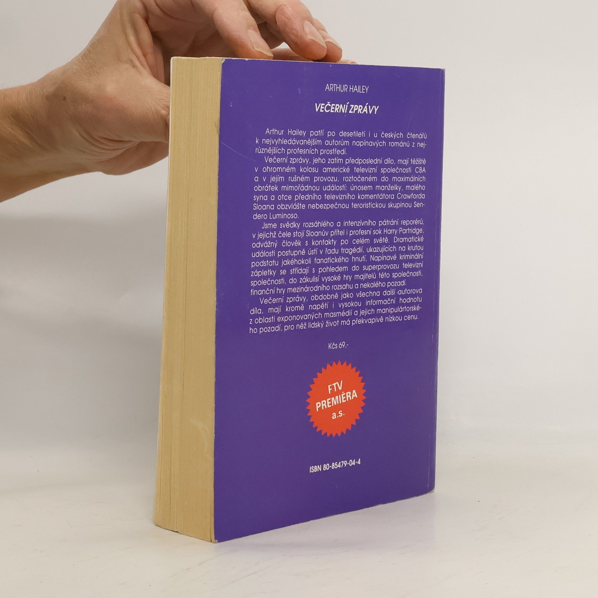 Vrcholný Haileyův román Večerní zprávy se odehrává v centru televizního kolosu americké zpravodajské stanice CBA, aktivovaného do maximálních obrátek tragickou událostí: únosem rodiny renomovaného televizního moderátora Crawforda Sloana levičáckou teroristickou organizací do Latinské Ameriky. Kdo bude v pátrání po únoscích úspěšnější americká FBI, nebo skupina profesionálních televizních novinářů CBA a jejich přátel rozesetých po celém světě, vedená charismatickým reportérem Harry Partridgem? Dramatické události ústící do řady tragédií i napínavé kriminální zápletky se střídají s pohledy do provozu televizní společnosti i do zákulisí vysoké finanční hry jejích majitelů mezinárodního rozsahu a s nekalým pozadím. S důkladností sobě vlastní odhaluje A. Hailey tajemství vzniku televizních zpráv i prostředí druhé strany dramatického příběhu při sběru materiálu pro tento román strávil mj. ve svých 67 letech několik měsíců mezi levicovými povstalci v peruánské džungli.... celý text