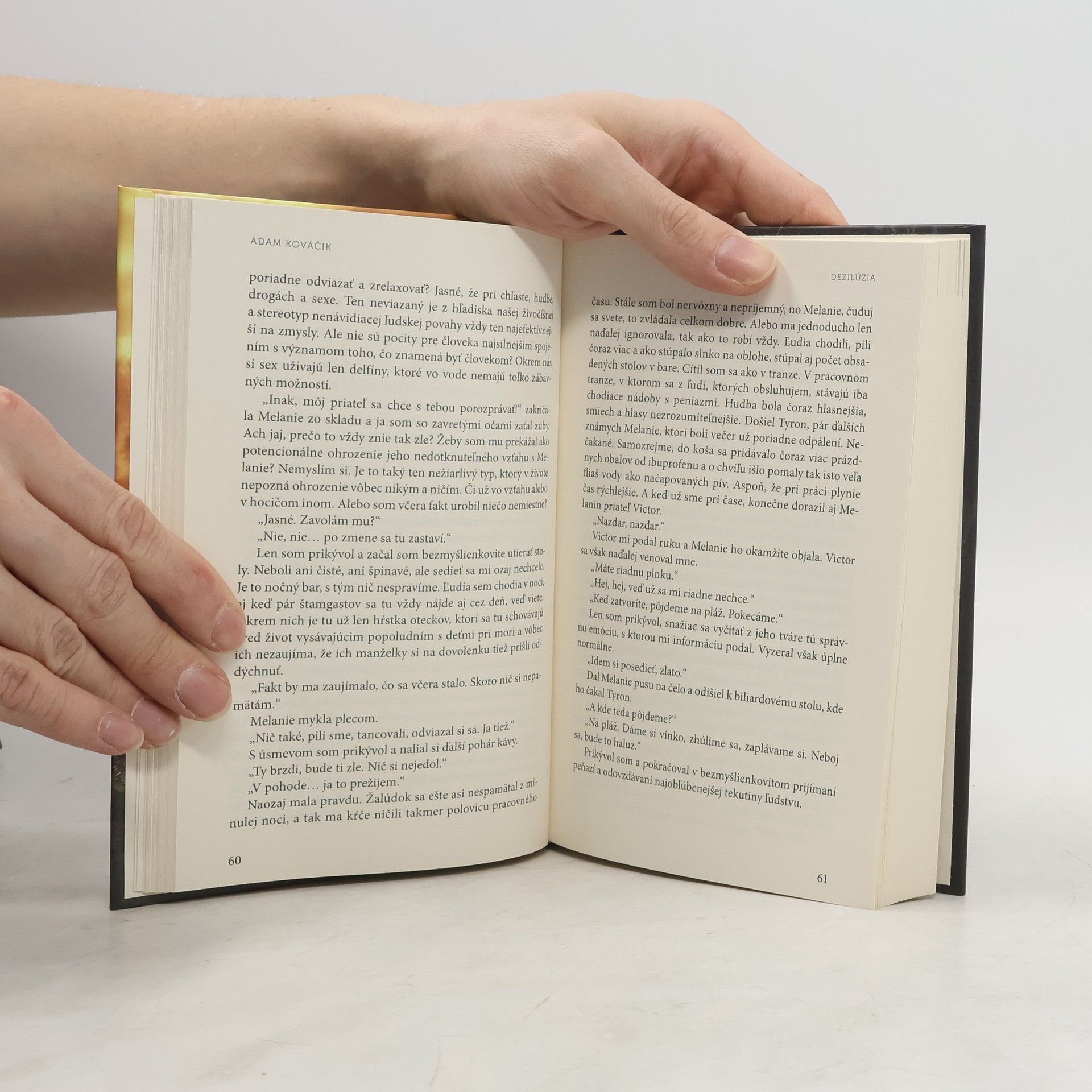 Občas musíš zvoliť inú cestu, aby si zistil, či tá, z ktorej si zišiel, bola správna. Poznáte ten pocit, keď ovplyvnený atmosférou, alkoholom, drogami a pýchou začínate mať pocit, že všetci naokolo sú zrazu akísi menší? Že na vás nikto nedočiahne a už nikdy to nebude inak? Daysona tento pocit dobehol a jeho život na Orave sa v okamihu ocitá v troskách. Aby unikol pred zodpovednosťou a spomienkami, odchádza zo Slovenska pracovať na Floridu do hotela tety Ruth. Je však ako hlodavec, ktorý sa neúspešne snaží uniknúť z neustále sa točiaceho kolesa... Len čo trochu vybočí, je späť. Drogy, zábava, dílovanie... a láska. Bol som v tejto chvíli nesmierne šťastný. Konečne nájdený, nepolapiteľný, v prúde rýchlo ubiehajúceho života. Jeden múdry človek mi však raz povedal: „Nehľadaj rozptýlenia, ktoré dokážu rozptýliť celý tvoj život.“ Myslím si, že mal pravdu. Dezilúzia je príbehom o priateľstvách, nádeji, šťastí a nešťastí. O zradách, závisti, paranoji aj pádoch. Drsné rozprávanie inšpirované skutočnými udalosťami, ktoré s vami zamáva a otvorí vám oči. Aj takto môže u niekoho vyzerať realita bežných dní.