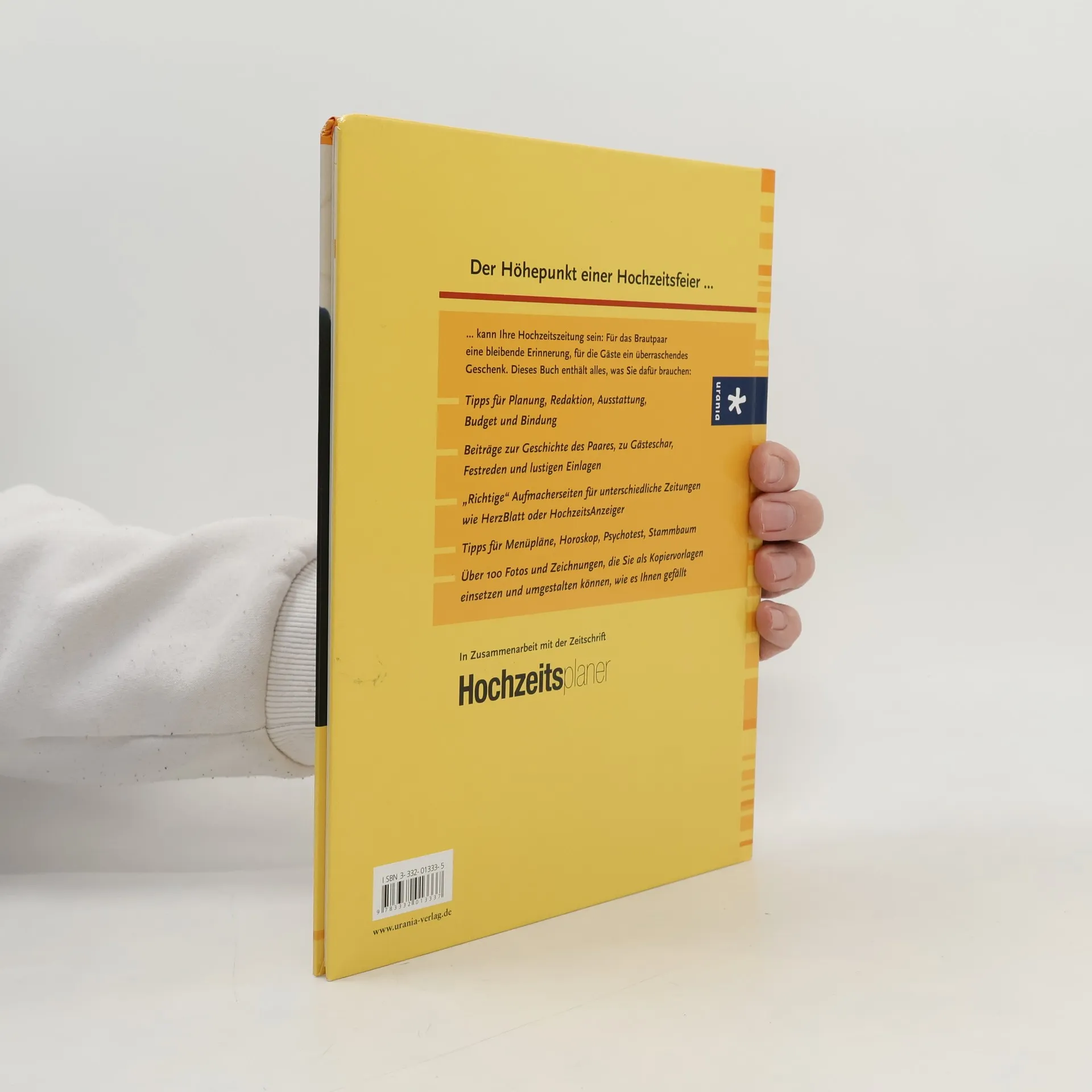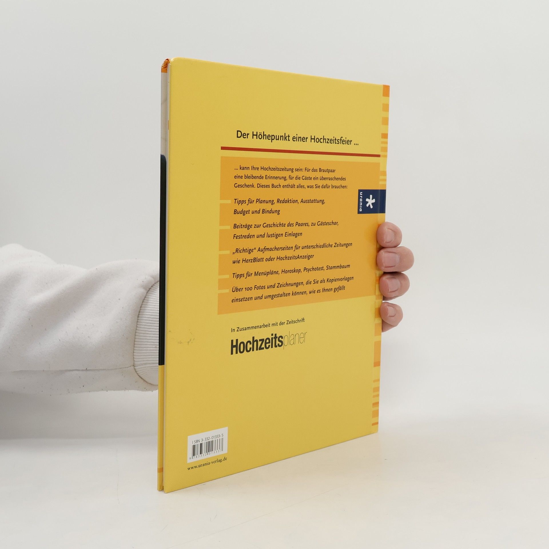 Heute gehört eine Hochzeitszeitung zu den wichtigsten Bestandteilen einer gelungenen Feier. Dieses Buch zeigt, wie ein Redaktionsteam sich zusammenfindet und ohne Zeitnot, Ärger und Stress eine witzige Zeitung mit Artikeln, Features, Layout, Bildern, Kleinanzeigen etc. herstellt. Fachmännisch werden auch Finanzierungs- und technische Fragen beantwortet.