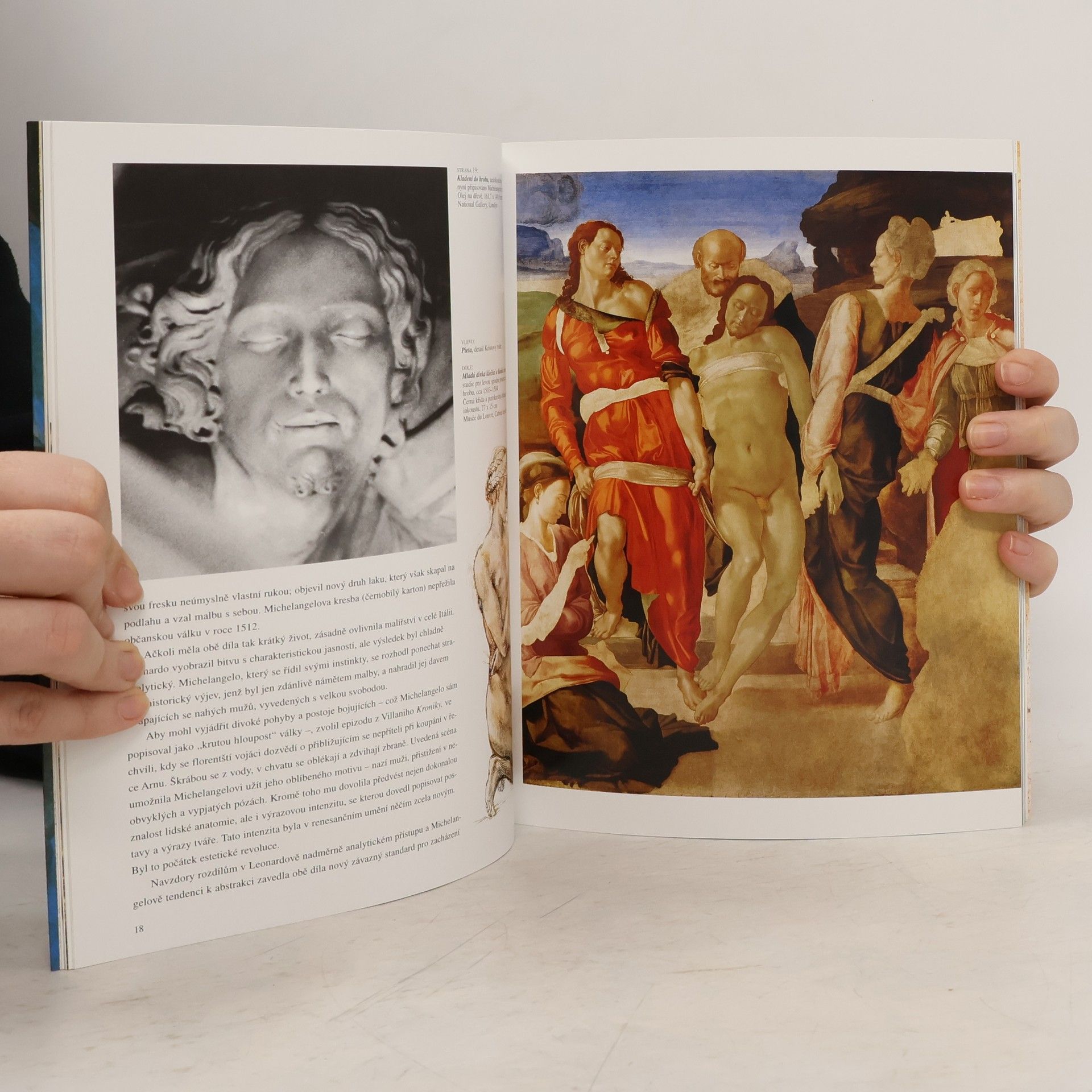 Monografie italského renesančního umělce, který ovlivnil všechny druhy výtvarného umění a jehož dílo se stalo zdrojem inspirace pro umělce až do současnosti. Kniha sleduje Michelangelovu renesanční mnohostrannost a řadu velkých projektů, kterým se postupně věnoval. Byl činný především jako sochař (náhrobek pro papeže Julia II.). Současně pracoval na malířské výzdobě klenby a oltářní stěny Sixtinské kaple ve Vatikánu (freska Poslední soud). Jako stavitel se zabýval plánováním a návrhy několika staveb a podílel se i na jejich plastické výzbobě. V roce 1532 vznikla i jeho sbírka kreseb a básní, která obsahuje i milostné sonety. V jeho díle vrcholí umění italské renesance.