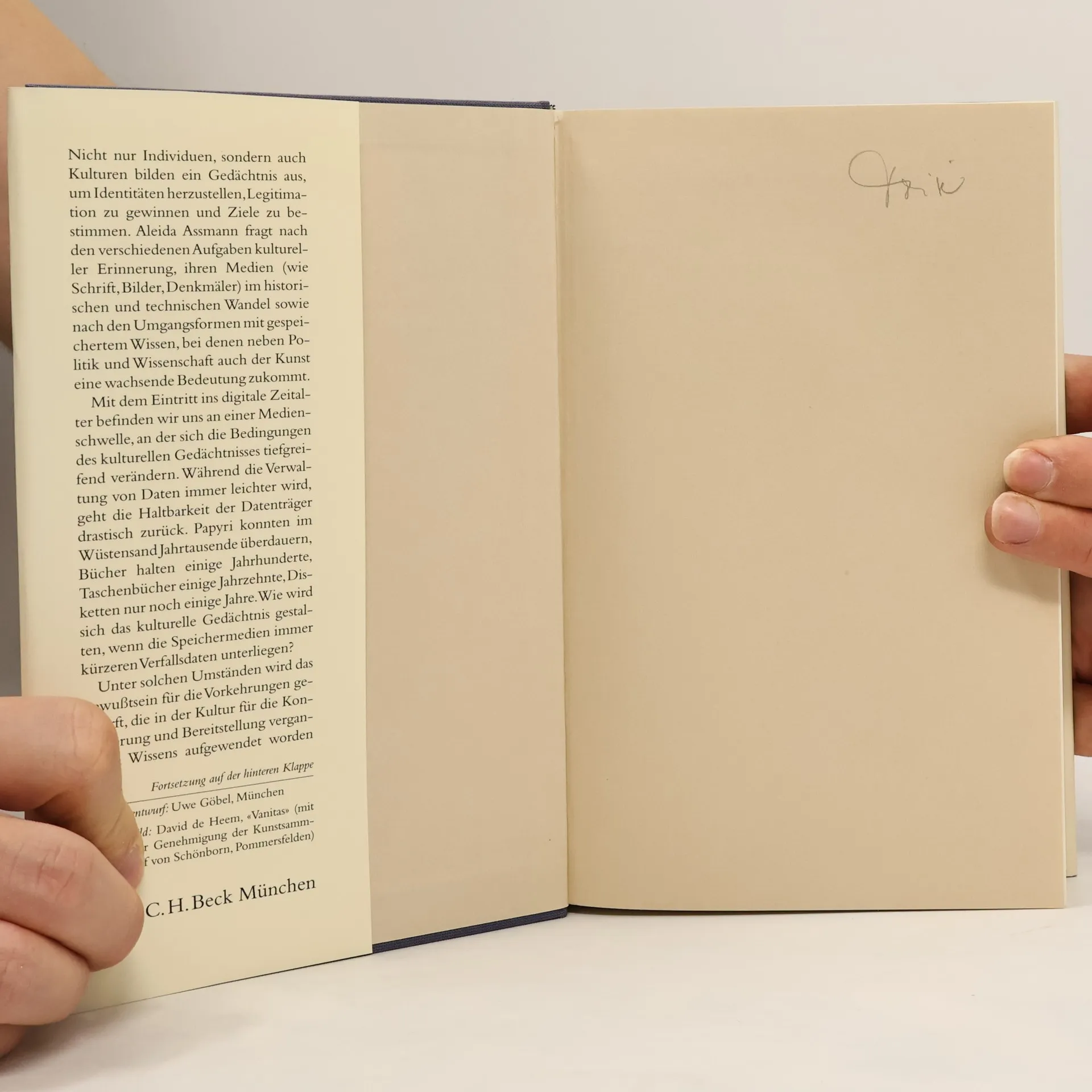 Nicht nur Individuen, sondern auch Kulturen bilden ein Gedächtnis aus, um Identitäten herzustellen, Legitimation zu gewinnen und Ziele zu bestimmen. Aleida Assmann fragt nach den verschiedenen Aufgaben kultureller Erinnerung, ihren Medien (wie Schrift, Bilder oder Denkmäler) sowie nach den Formen des Umgangs mit gespeicherten Wissen, bei denen neben Politik und Wissenschaft auch der Kunst eine wachsende Bedeutung zukommt. „Bei ihrem reichhaltigen Streifzug durch die Kulturgeschichte zeichnet Aleida Assmann die Bedeutung von Erinnerung bei Projekten der Identitätsbildung nach. … Der emotional ergreifendste, aber auch politisch brisanteste Aspekt dieses Rundgangs taucht auf jenen Seiten auf, wo die Nähe von Erinnerung und Situationen des Schocks oder Katastrophen ausgeleuchtet wird.“ Elisabeth Bronfen, Süddeutsche Zeitung
