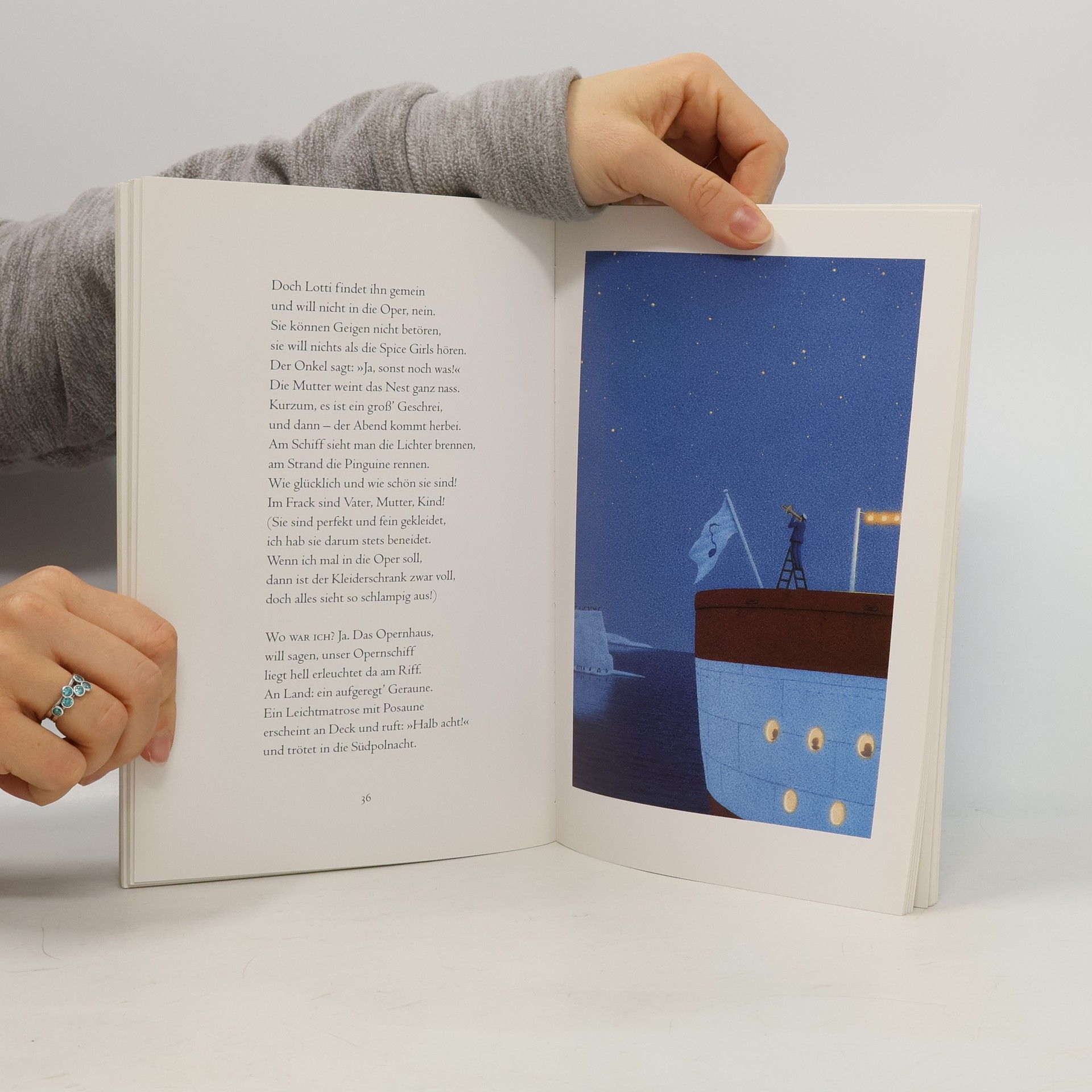 Eines der ewiges Rätsel ist nun endlich gelöst! Nämlich, warum die Natur die Pinguine mit ihrer höchst eleganten Abendgarderobe ausgestattet hat. Natürlich, weil Abertausende von Pinguinen stets gerüstet sein wollen für das Opernschiff, das unberechenbarerweise irgendwann so alle paar Jahre mal vorbeischaut und zu einer Vorstellung an Bord einlädt. Diesmal wird 'La Traviata' gegeben, dargeboten von den drei Tenören. Und weil Pinguine in der tiefe ihres Herzens ganz warm und weich und sentimental sind, gibt's am Ende der traurigen Geschichte genauso viele Tränen wie Beifallsstürme, und alle schwimmen glücklich, bewegt, guter Dinge und - einige sogar frisch verliebt - zurück an Land. Danach beginnt erneut das lange Warten, auf die nächste Oper. Denn 'Aida' - 'Aida' wär am Südpol auch eine schöne Sache!