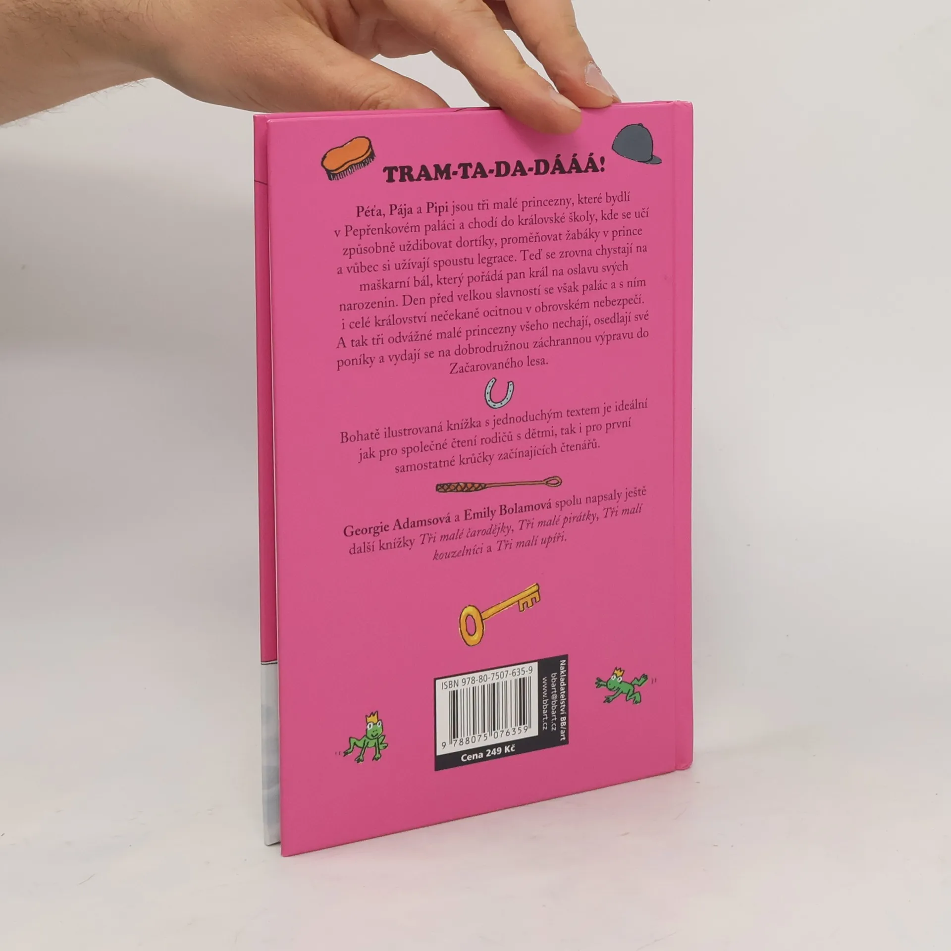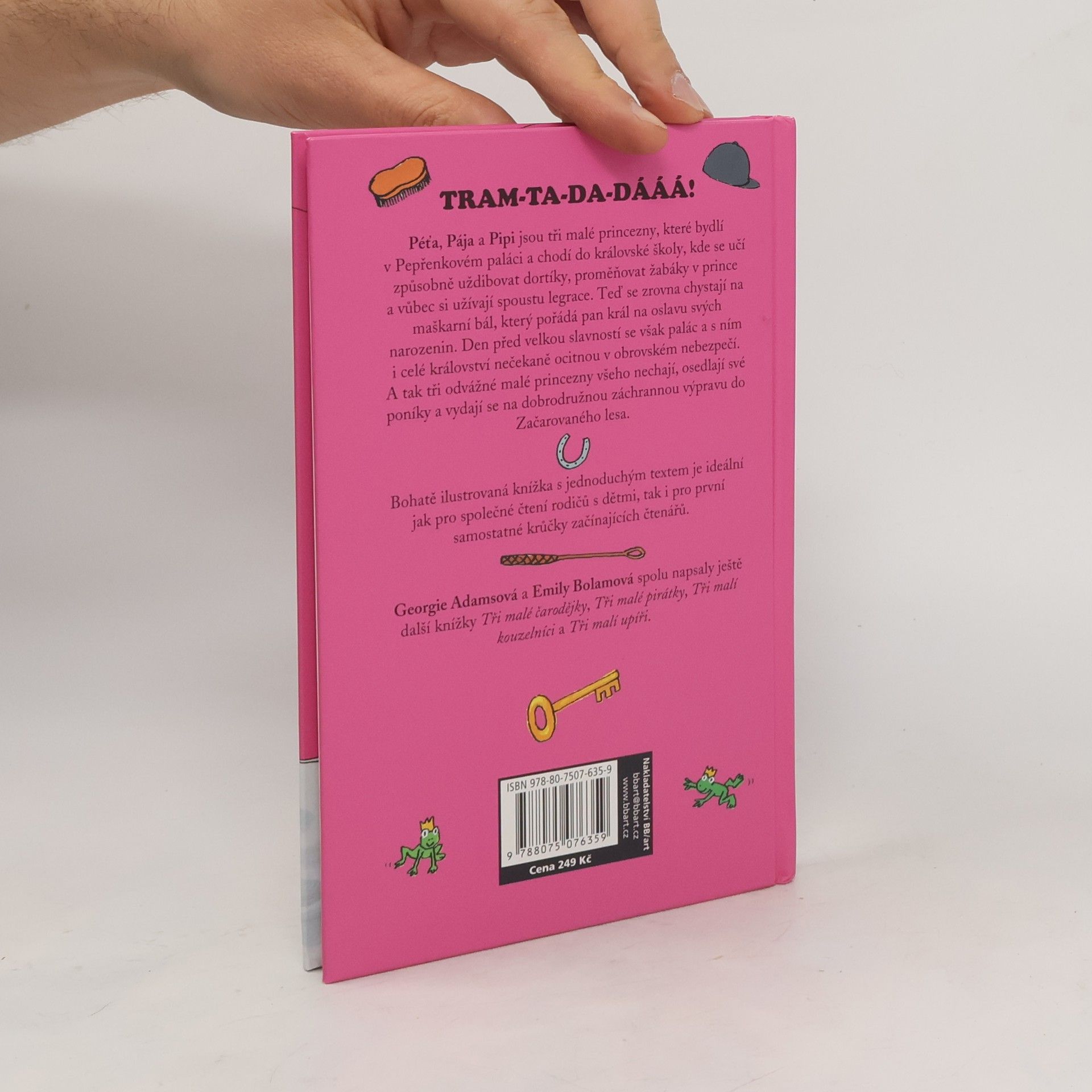 Péťa, Pája a Pipi jsou tři malé princezny, které bydlí v Pepřenkovém paláci a chodí do královské školy, kde se učí způsobně uždibovat dortíky, proměňovat žabáky v prince a vůbec si užívají spoustu legrace. Teď se zrovna chystají na maškarní bál, který pořádá pan král na oslavu svých narozenin. Den před velkou slavností se však palác a s ním i celé království nečekaně ocitnou v obrovském nebezpečí. A tak tři odvážné malé princezny všeho nechají, osedlají své poníky a vydají se na dobrodružnou záchrannou výpravu do Začarovaného lesa. Připravili jsme pro Vás dvě nové knížky Tři malí upíři a Tři malí kouzelníci a tři reedice velmi oblíbených knižek: Tři malé princezny, Tři malé pirátky a Tři malé čarodějky v novém formátu, které vyjdou během podzimu 2016. Bohatě ilustrované knížky s jednoduchým textem jsou ideální jak pro společné čtení rodičů s dětmi, tak i pro první samostatné krůčky začínajících čtenářů.