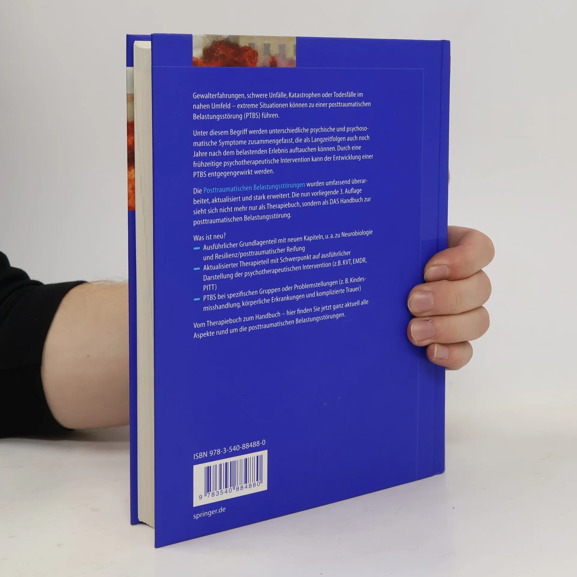 Gewalt, Katastrophen oder Todesfälle im nahen Umfeld – solche extremen Erfahrungen können zu einer posttraumatischen Belastungsstörung (PTSD) führen. Menschen mit PTSD leiden unter psychischen und psychosomatischen Symptomen, die auch noch Jahre später auftreten können. Das Buch behandelt alle Aspekte rund um die PTSD und ist in der 3., überarbeiteten und erweiterten Auflage nicht mehr nur ein Therapiebuch, sondern ein umfassendes Handbuch mit einem ausführlichen Grundlagenteil, zahlreichen neuen Kapiteln und einem aktualisierten Therapieteil.