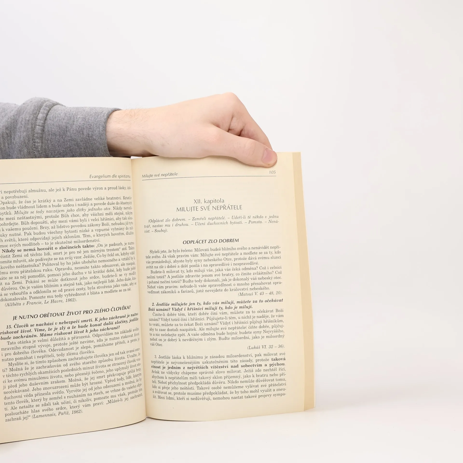 Kniha přináší oroginální přístup k tradičním křesťanským otázkám pohledem spiritismu, obsahuje 28 kapitol, pojednává v nich kukpříkladu o Evengelijním kultu v domově, Autoritě duchovní nauky, Království mé není z tohoto světa, Je mnoho příbytků v domě Otce mého, Nikdo nespatří království Boží, Utěšující Kristus, Blahoslavení mírní a pokorní, Milovat scého bližního, Cti otce svého i matku svou, Víra hory přenáší, Dělníci poslední hodiny, Falešní Kristové a proroci, Nerozdělujte to, co Bůh spojil, Sbírka spiritistických motliteb...
