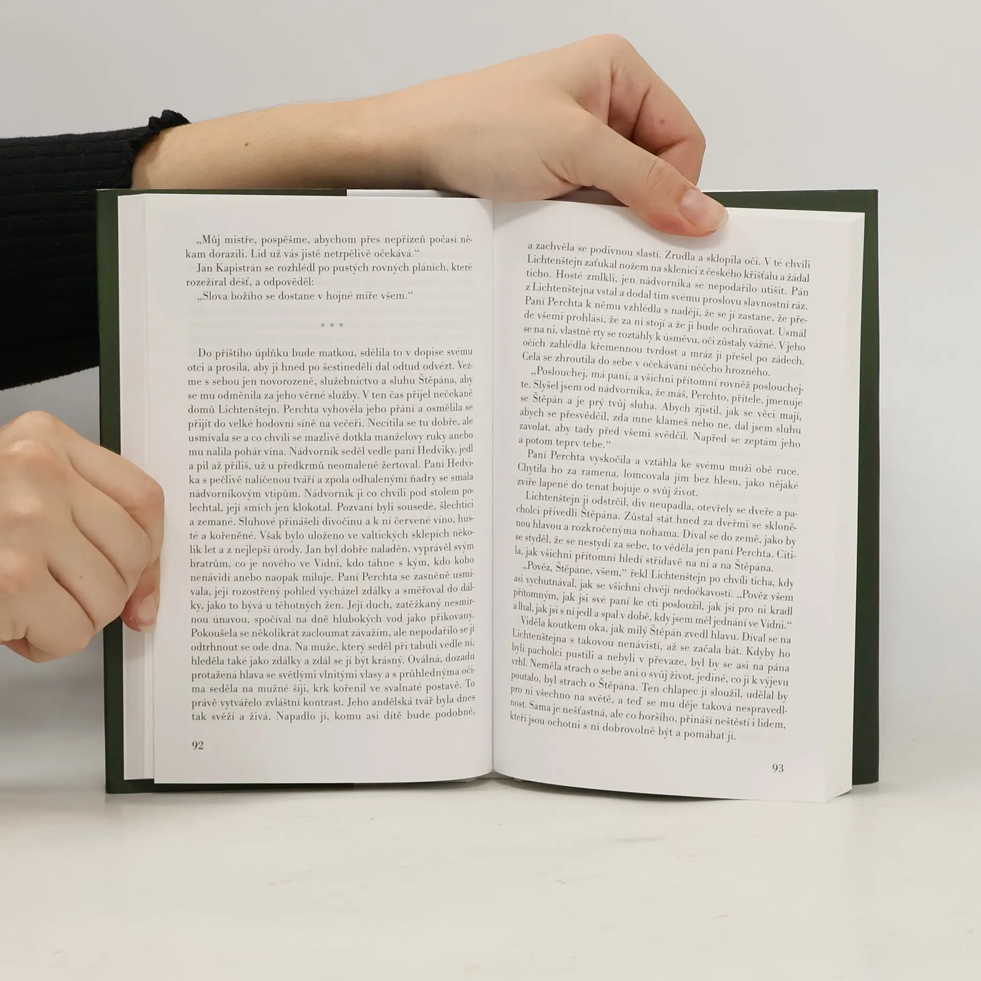Historický román z 15. století o české šlechtičně Perchtě z Rožmberka, již páter Balbín spojil s Bílou paní. Na pozadí barvité fresky Čech v období mezi husitskými válkami a Jiřím z Poděbrad, v období půtek o český trůn, vzmachu a pádu mocného velmože Oldřicha z Rožmberka a misijních cest inkvizitora Jana Kapristána se odehrává příběh tragického manželství krásné a vášnivé Perchty a Jana z Lichtenštejna. Jejich život se stal neustálým bolestným míjením, neboť jejich pýcha jim nedovolila, aby se kdy potkali a jeden druhému odpustili. Autorka čerpá z dochovaných dopisů historické Perchty a dalších autentických materiálů.
