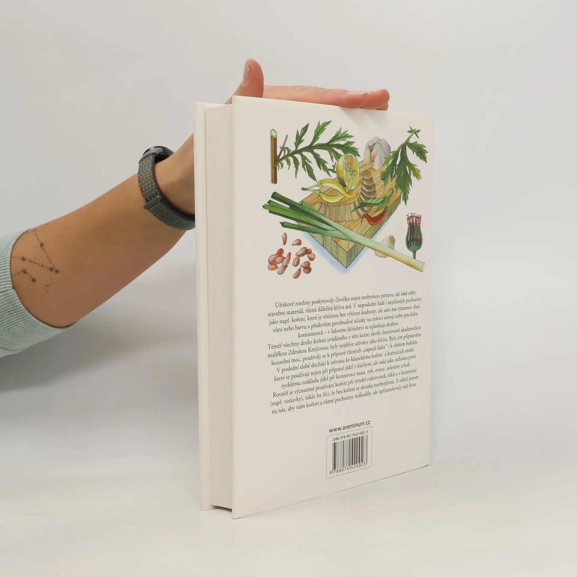 Historie používání koření, jeho význam pro zdraví, přehled jednotlivých druhů aromatických rostlin s botanickým popisem, původem a rozšířením, obsahem účinných látek a doporučení k využití v kuchyni.