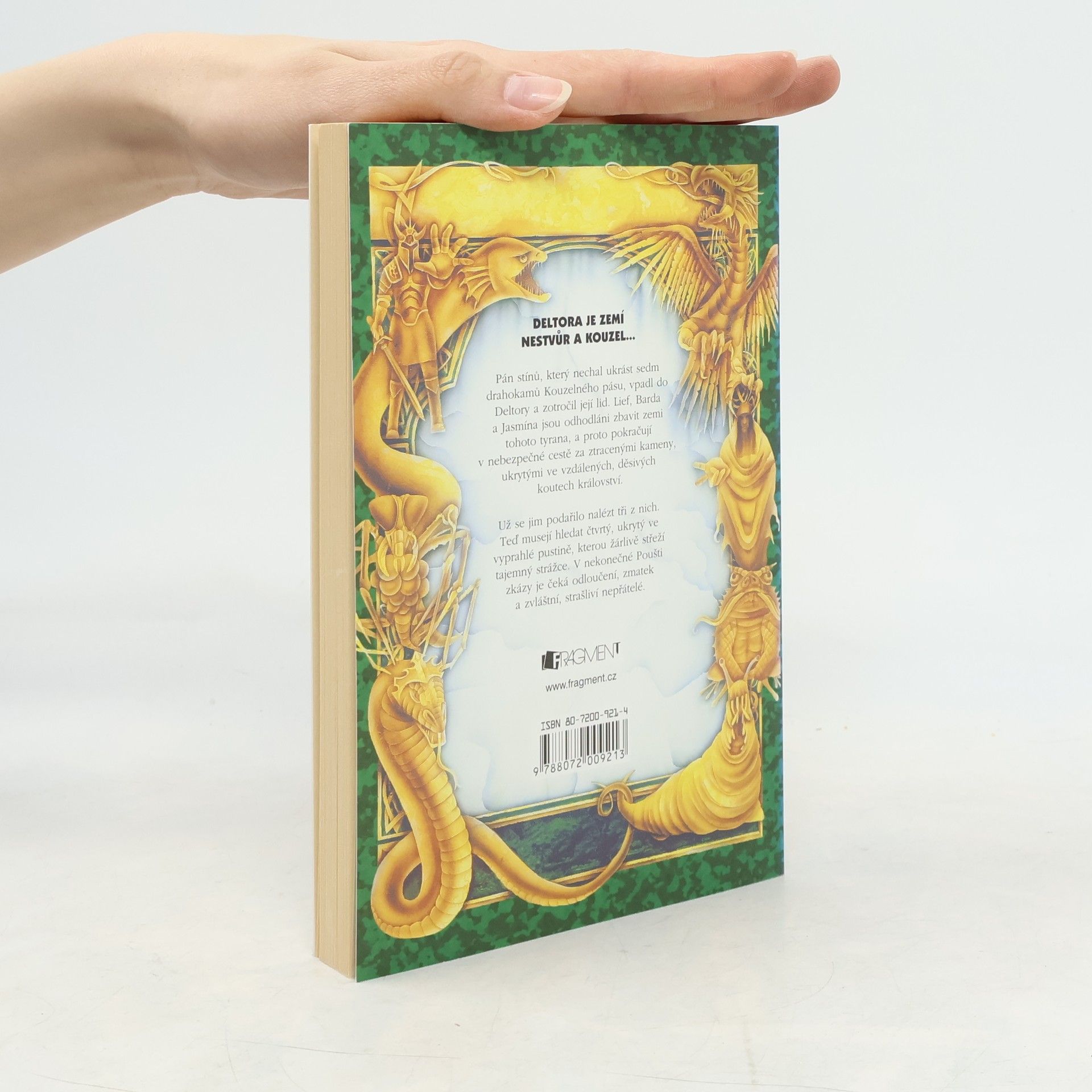 Na svých dalších cestách z Města krys k Poušti zkázy prožívají Lief, Barda a Jasmína opět řadu dobrodružství a poznávají spoustu zvláštních postav. Tentokrát už má Lief v Pásu zasazeny tři ze ztracených drahokamů – topas jako symbol věrnosti, rubín, symbol štěstí, a opál, symbol naděje. Největší nebezpečí přátele tentokrát čeká v dunách Pouště zkázy, kde musí čelit Šedým strážcům, písečným nestvůrám, osamění a zoufalství, ale také nenasytnému živoucímu písku, který kromě mnoha jiných pokladů střeží rovněž další ze ztracených kamenů. I tentokrát budou našim přátelům magické síly kamenů z Kouzelného pásu Deltory pomáhat při jeho hledání.