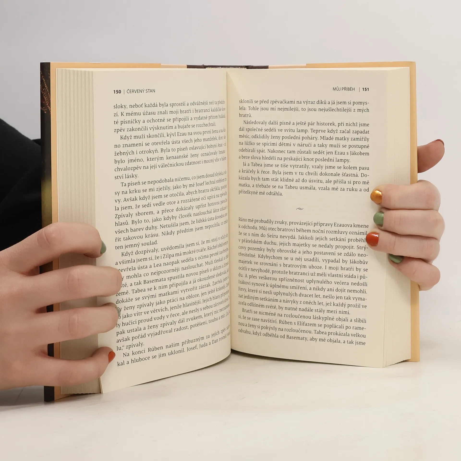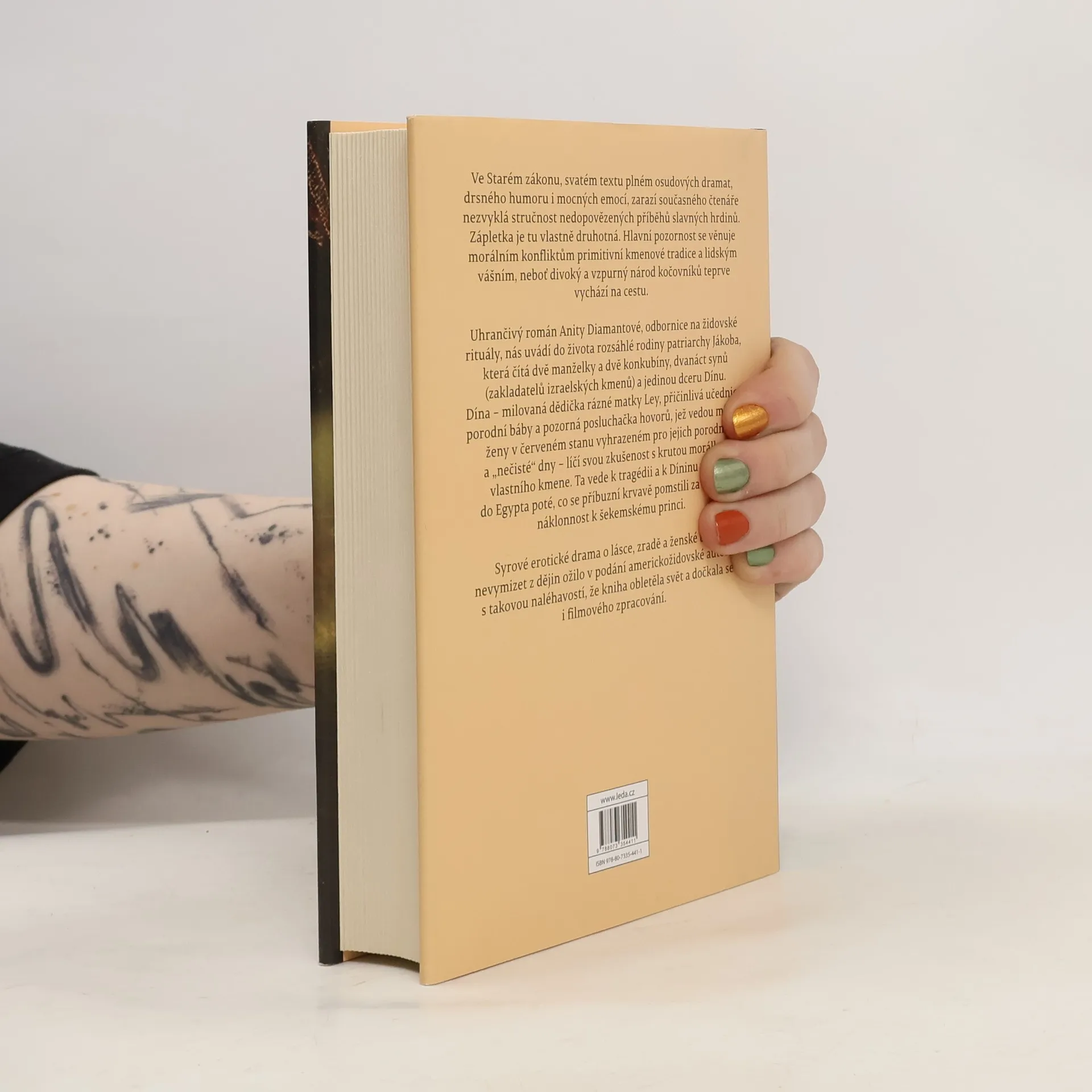 Ve Starém zákonu, svatém textu plném osudových dramat, drsného humoru i mocných emocí, zarazí současného čtenáře nezvyklá stručnost nedopovězených příběhů slavných hrdinů. Zápletka je tu vlastně druhotná. Hlavní pozornost se věnuje morálním konfliktům primitivní kmenové tradice a lidským vášním, neboť divoký a vzpurný národ kočovníků teprve vychází na cestu. Uhrančivý román Anity Diamantové, odbornice na židovské rituály, nás uvádí do života rozsáhlé rodiny patriarchy Jákoba, která čítá dvě manželky a dvě konkubíny, dvanáct synů (zakladatelů izraelských kmenů) a jedinou dceru Dínu. Dína – milovaná dědička rázné matky Ley, přičinlivá učednice porodní báby a pozorná posluchačka hovorů, jež vedou místní ženy v červeném stanu vyhrazeném pro jejich porodní a „nečisté“ dny – líčí svou zkušenost s krutou morálkou vlastního kmene. Ta vede i k dívčině tragédii a útěku do Egypta poté, co se příbuzní krvavě pomstili za Díninu náklonnost k šekemskému princi. Syrové erotické drama o lásce, zradě a ženské touze nevymizet z dějin ožilo v podání americkožidovské autorky s takovou naléhavostí, že kniha obletěla svět a dočkala se i filmového zpracování.