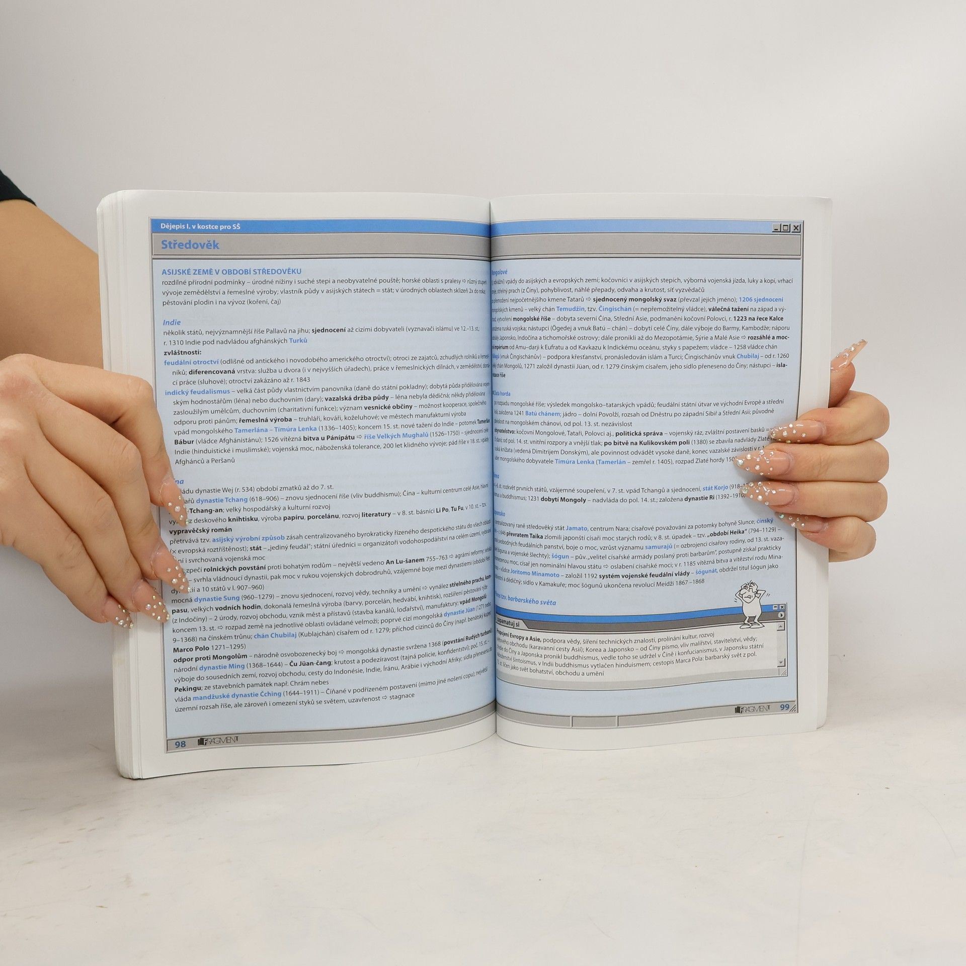 Přepracované a aktualizované vydání populární doplňkové učebnice pro střední školy v novém praktickém formátu. Dvoudílná učebnice shrnuje přehledně to podstatné, co student střední školy potřebuje nejen při přípravě k maturitě, ale během celého studia na střední škole. 1. díl je věnován období od pravěku po středověk.